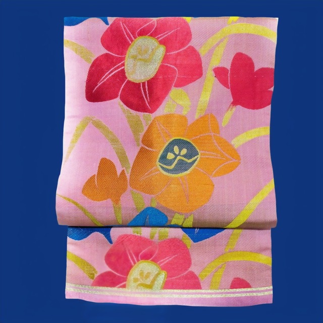 【抽象花柄のアンティーク名古屋帯】 抽象的な花柄が描かれたアンティーク名古屋帯です。 つつじ色地に赤、青、オレンジ色の花が描かれたカラフルポップな帯。 大正ロマンな雰囲気がお好きな方は是非! リメイク用にもオススメです! ・大きなシミはなく状態は綺麗。 ・所々に小さなしみややけ、ほつれがあります。 (サイズ) 前部分長さ:235.5㎝ お太鼓部分長さ:121.5㎝ 前幅:15㎝ お太鼓幅:30cm (素材) 絹 ご覧いただきありがとうございます。 トラブル防止のため、以下の注意点を必ずお読みください。 【ご購入時の注意点 】 ●アンティークのお品のため、シミ、傷、焼けによる変色などがございます。また、詳細な検品を心がけておりますが、シミ等の見落としがある場合があります。また、着用時に目立つ部分以外は表記をしておりません。何卒ご了承いただけますようお願い申し上げます。 ●サイズは1点ずつ手作業で採寸しております。多少の誤差が生じる場合がございます。 ●お使いの端末や閲覧環境により、写真と実物の色味や質感、サイズ感が多少異なって見えることがございます。色味が違うといった返品には応じかねます。 ●こちらの不備以外での返品や返金の対応はお断りしております。 ●宛先不明、住所記載間違いなど、お客様のご都合で商品が戻ってきた場合、着払いにて再発送させていただきます。 最後まで読んでいただき、ありがとうございました。 気になる点がございましたらお気軽にご質問下さい。