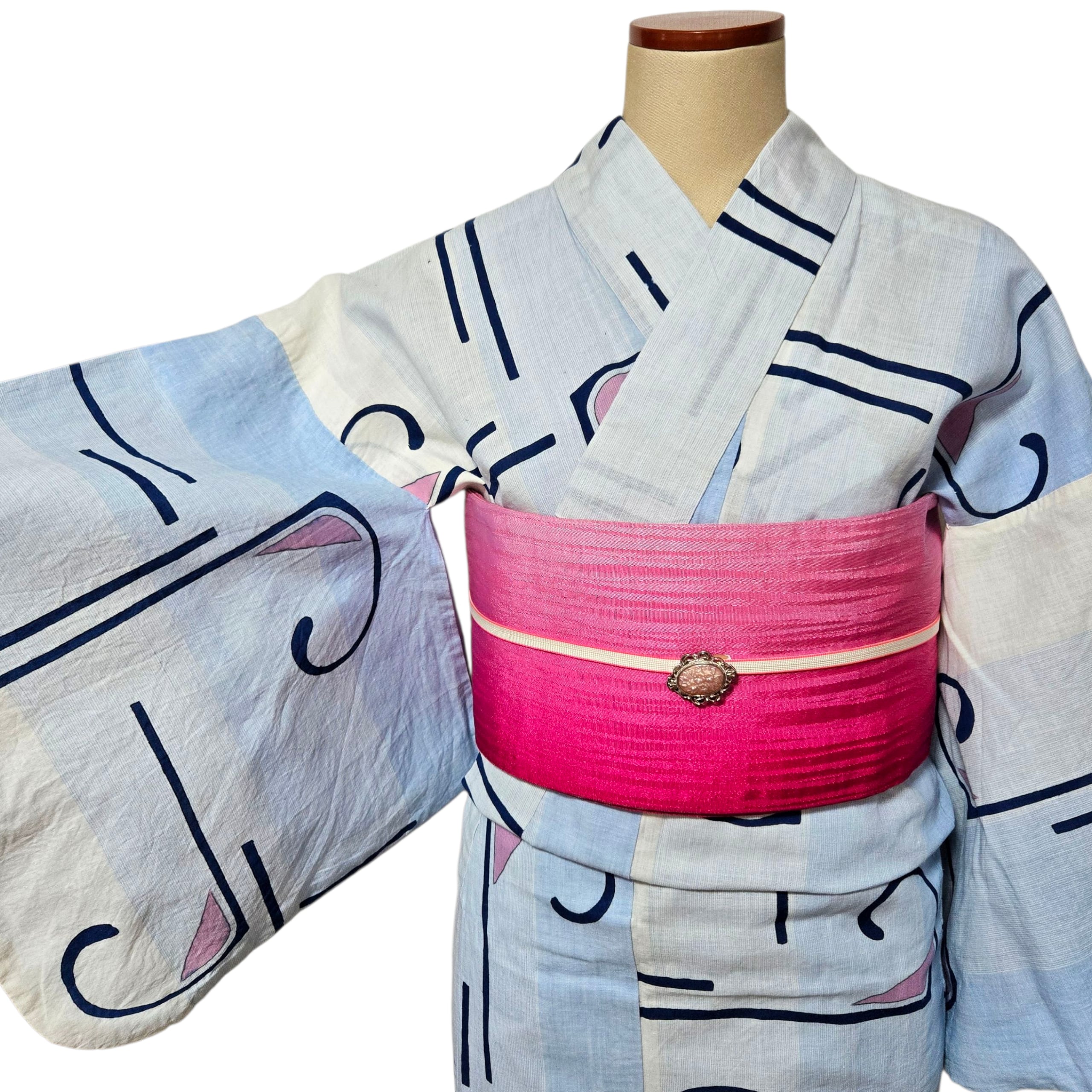 モダン 幾何学 浴衣 半幅帯 ピンク