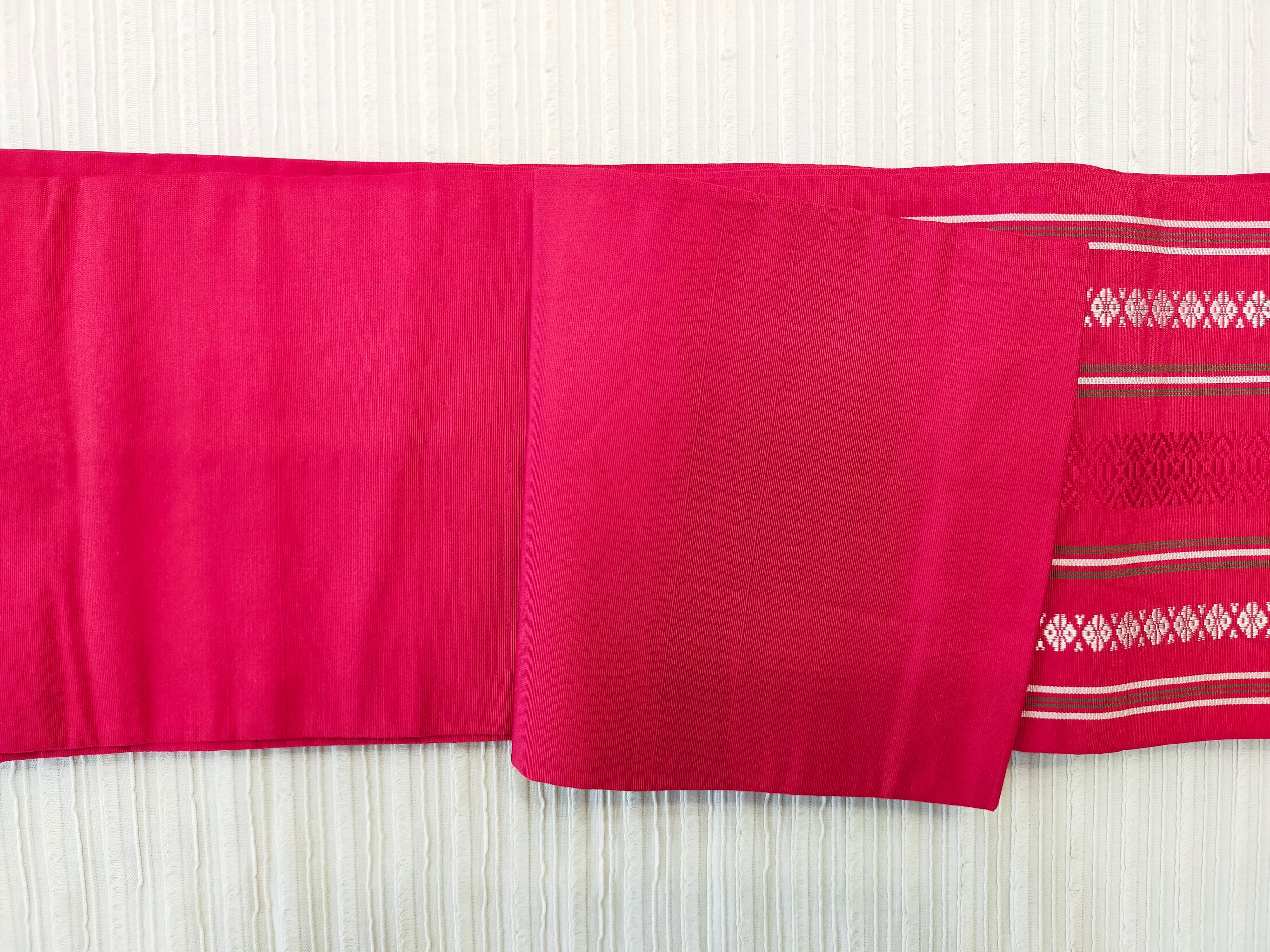 アンティーク 注染 浴衣 花 博多織 半幅帯 赤