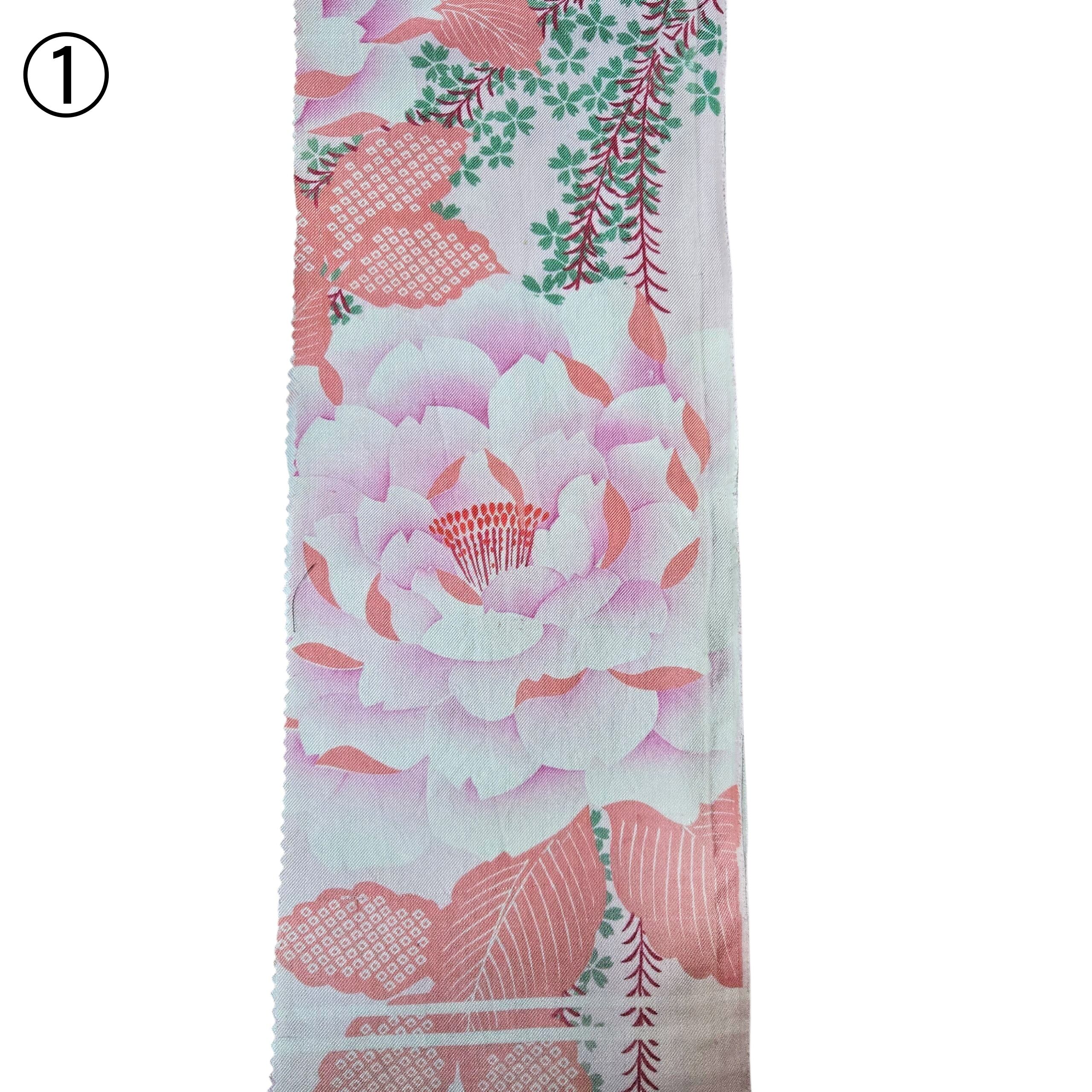 合わせやすい薄ピンク地に大きな牡丹がとても華やかです。