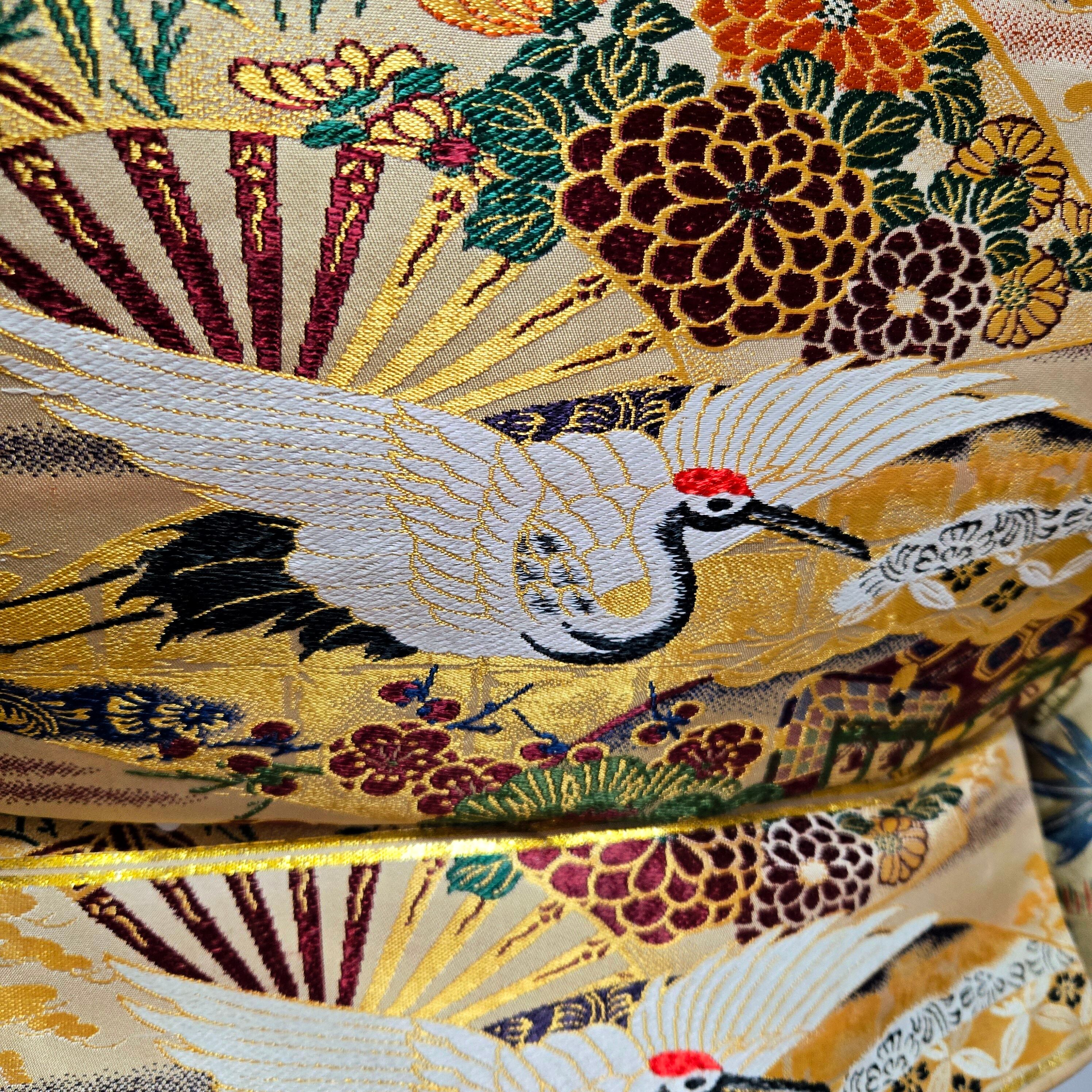 椿 松 梅 鹿の子 アンティーク着物 鶴 名古屋帯