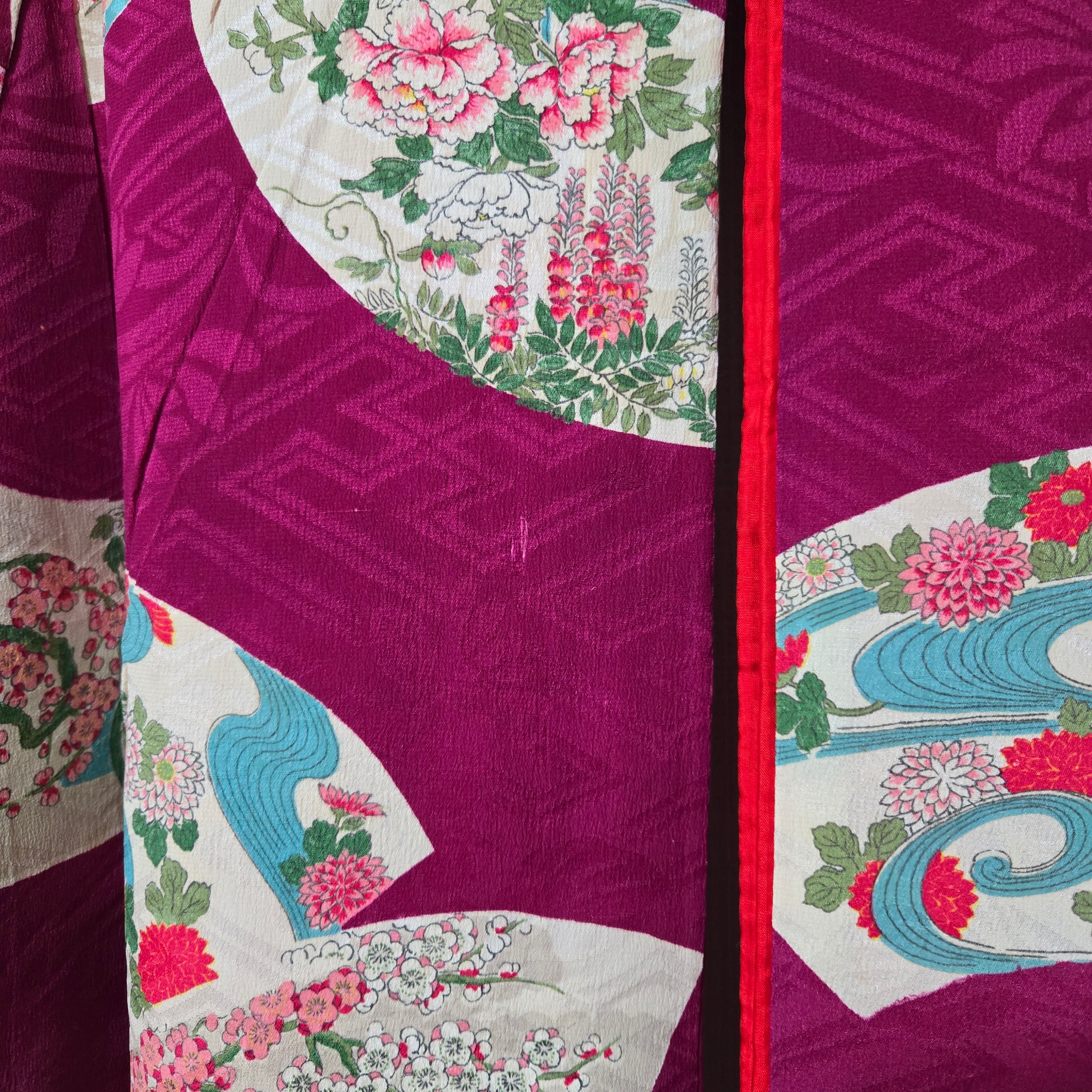 花扇 梅 牡丹 松 アンティーク着物 名古屋帯