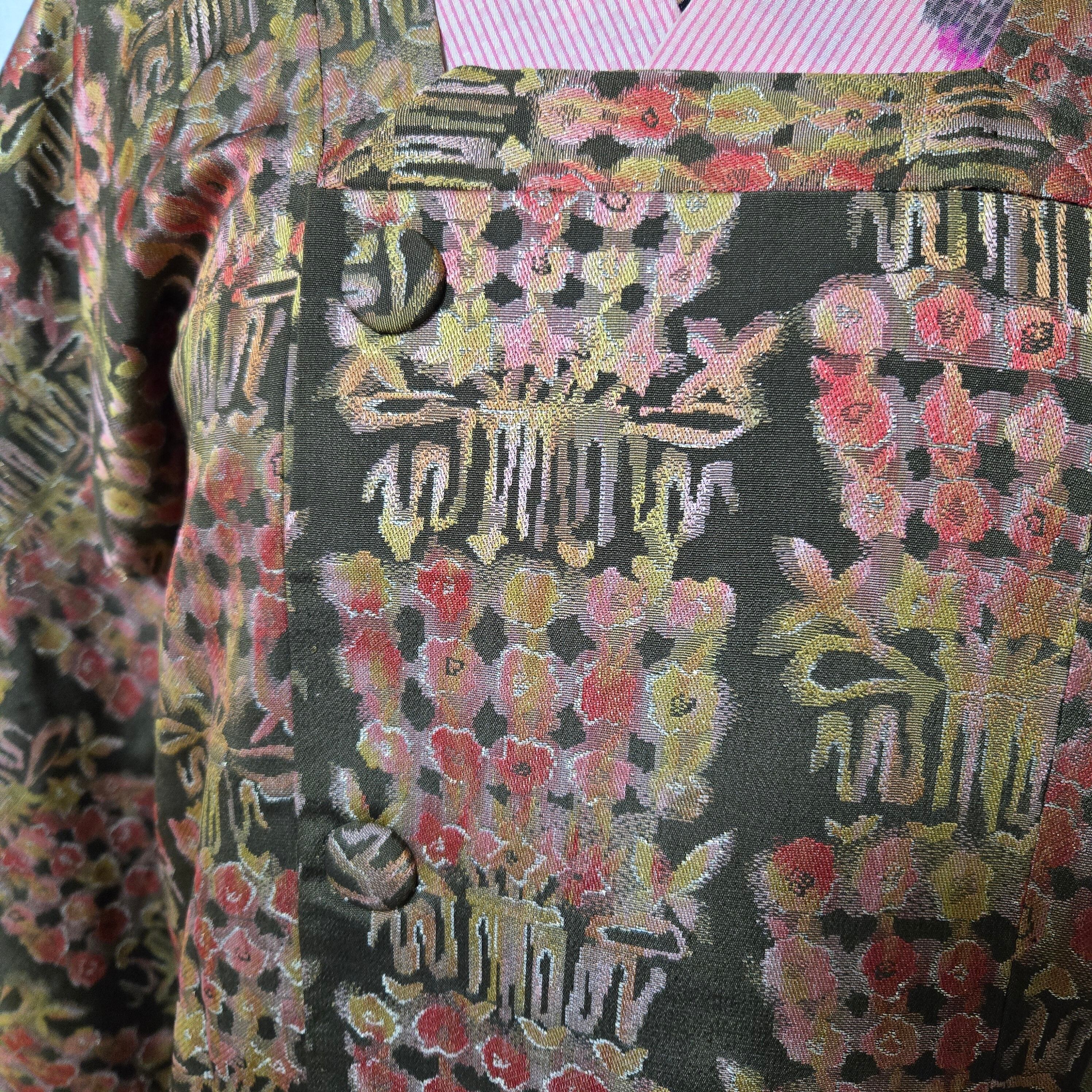 花束のような抽象的な柄のレトロな道行き。