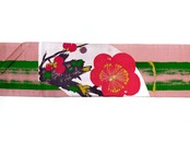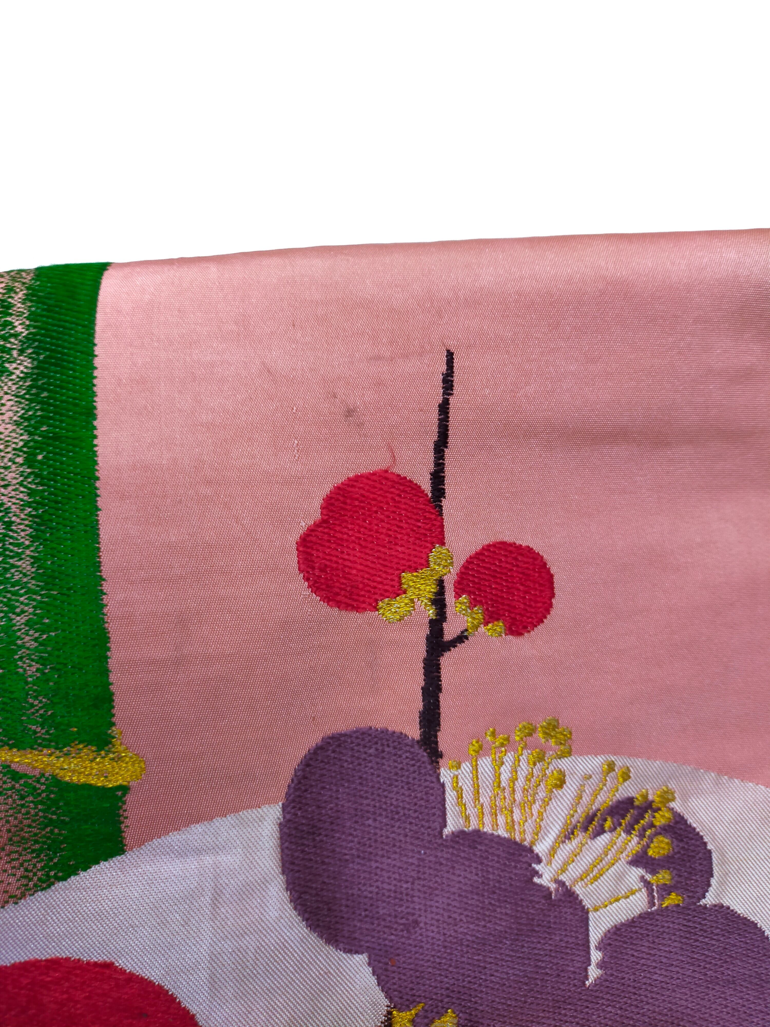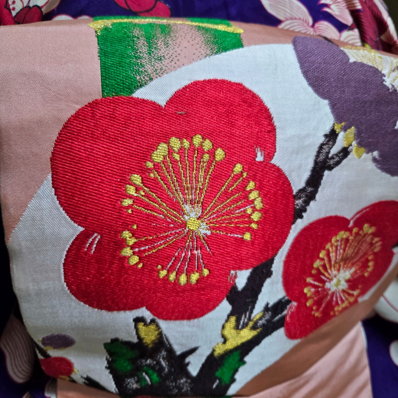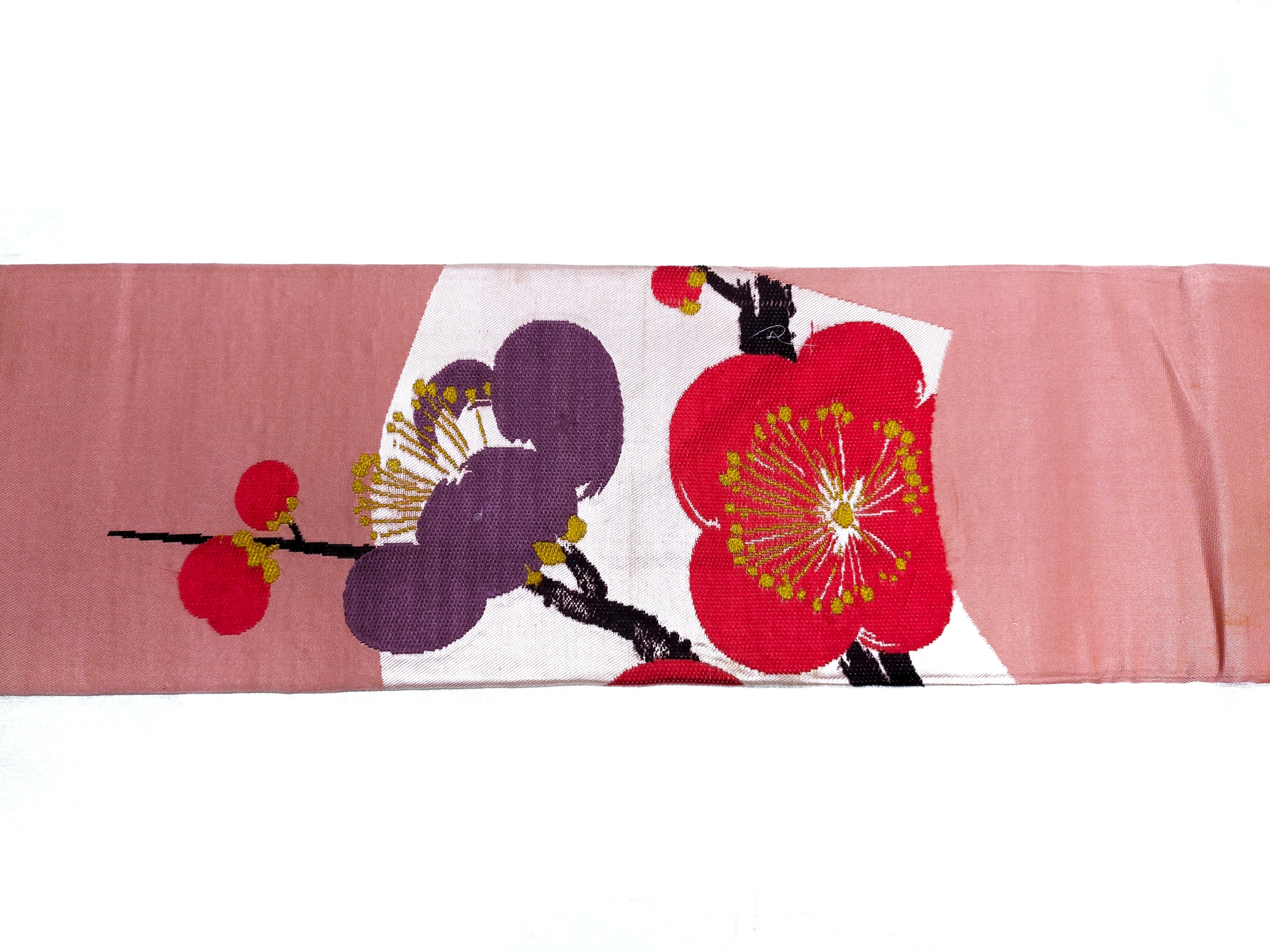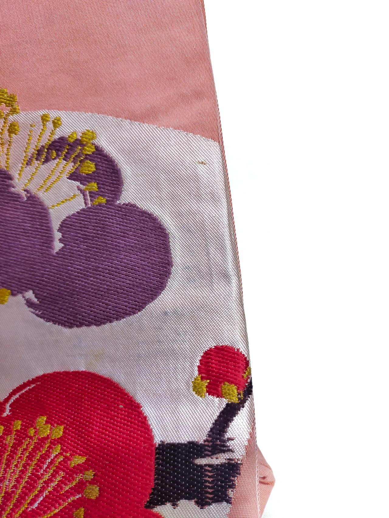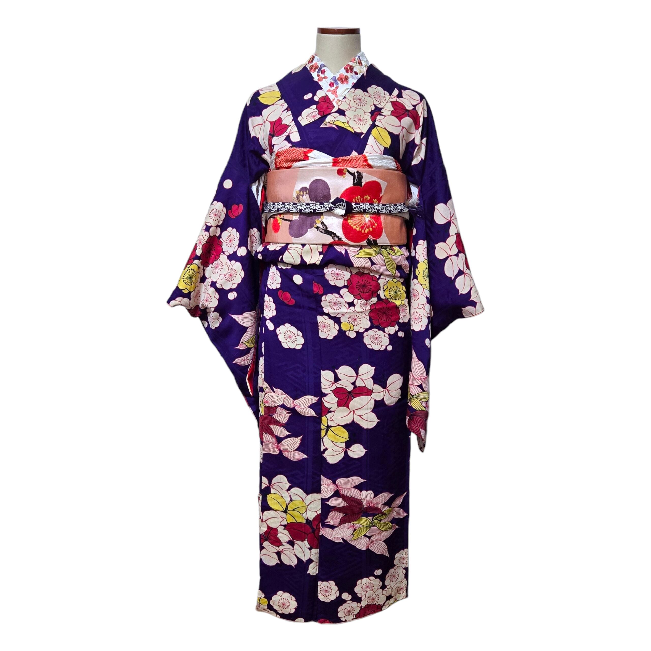 梅柄のレトロなアンティーク着物に梅と竹が大きく描かれたおめでたいアンティーク名古屋帯を合わせました。