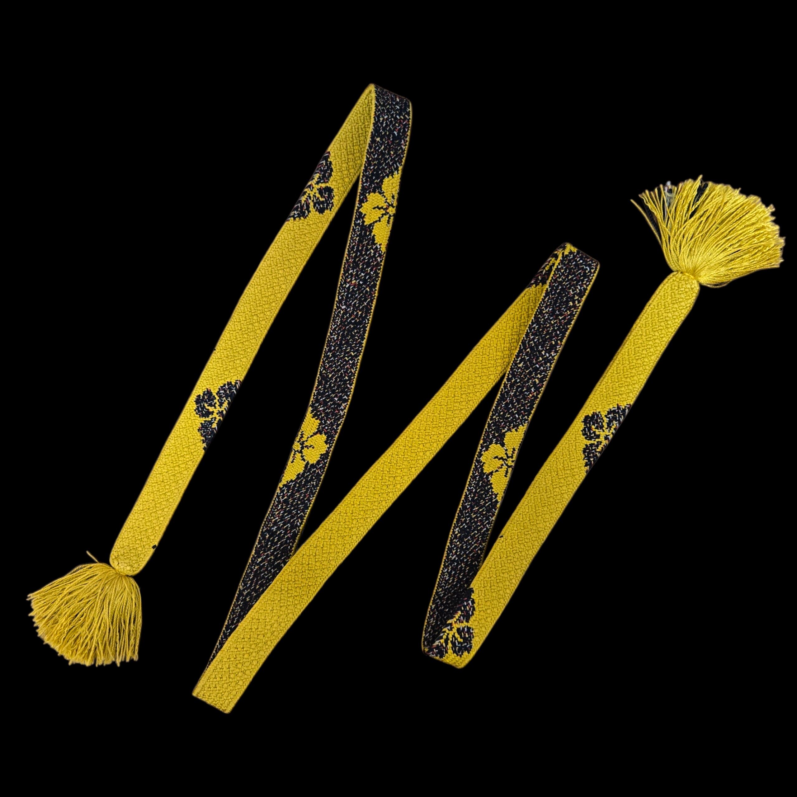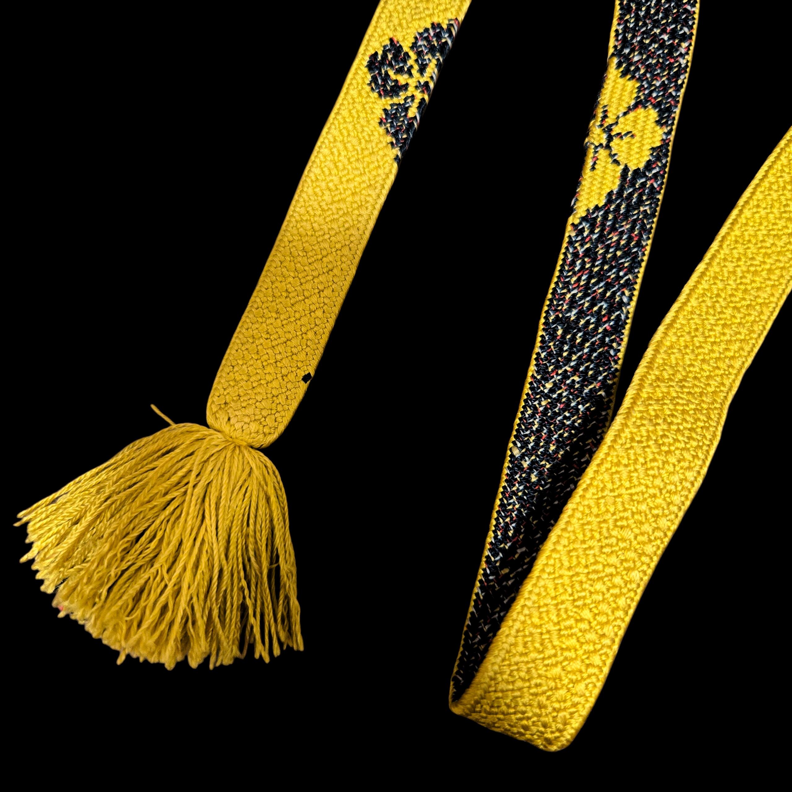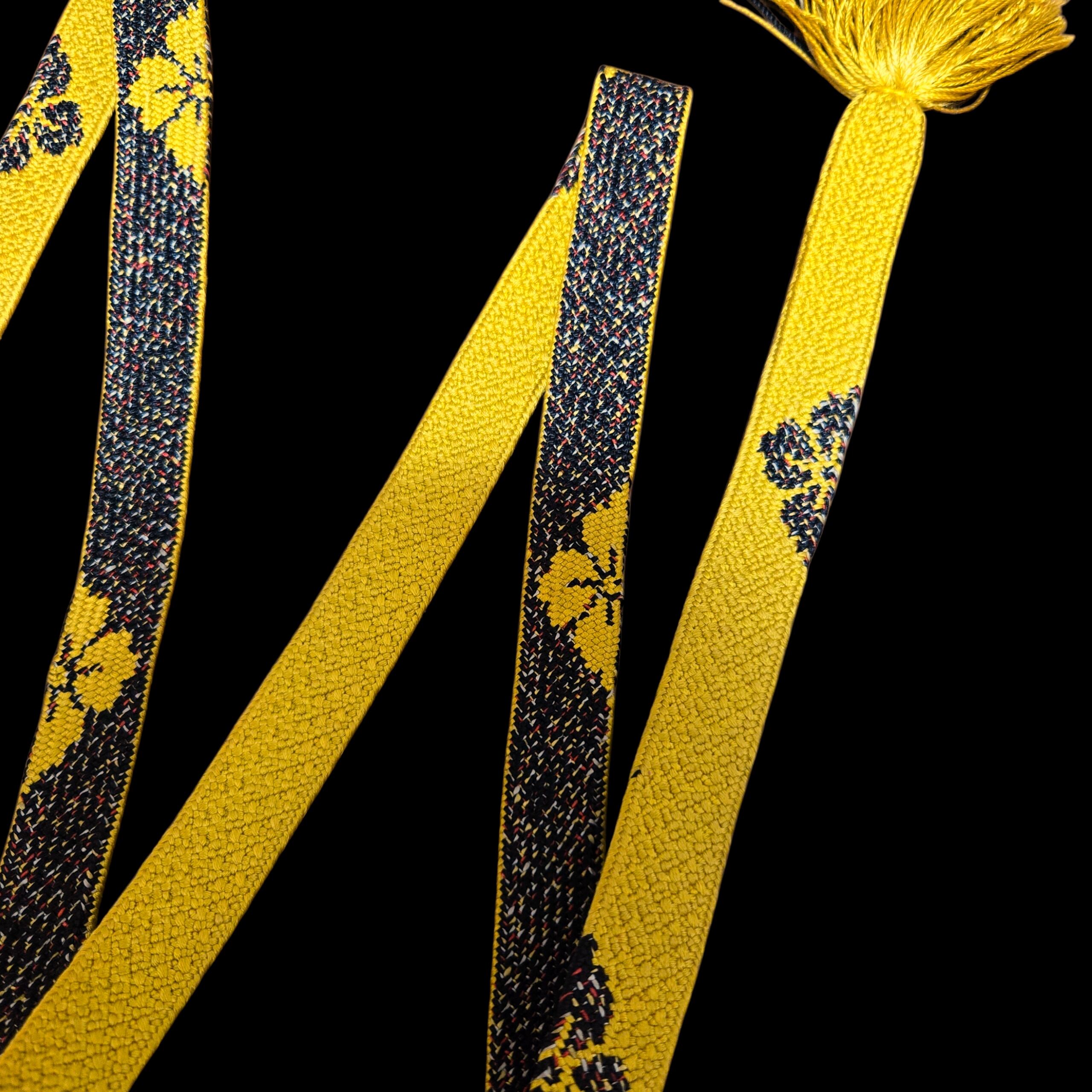 黄色と黒の両面使えるアンティークならではの太めの帯締め。