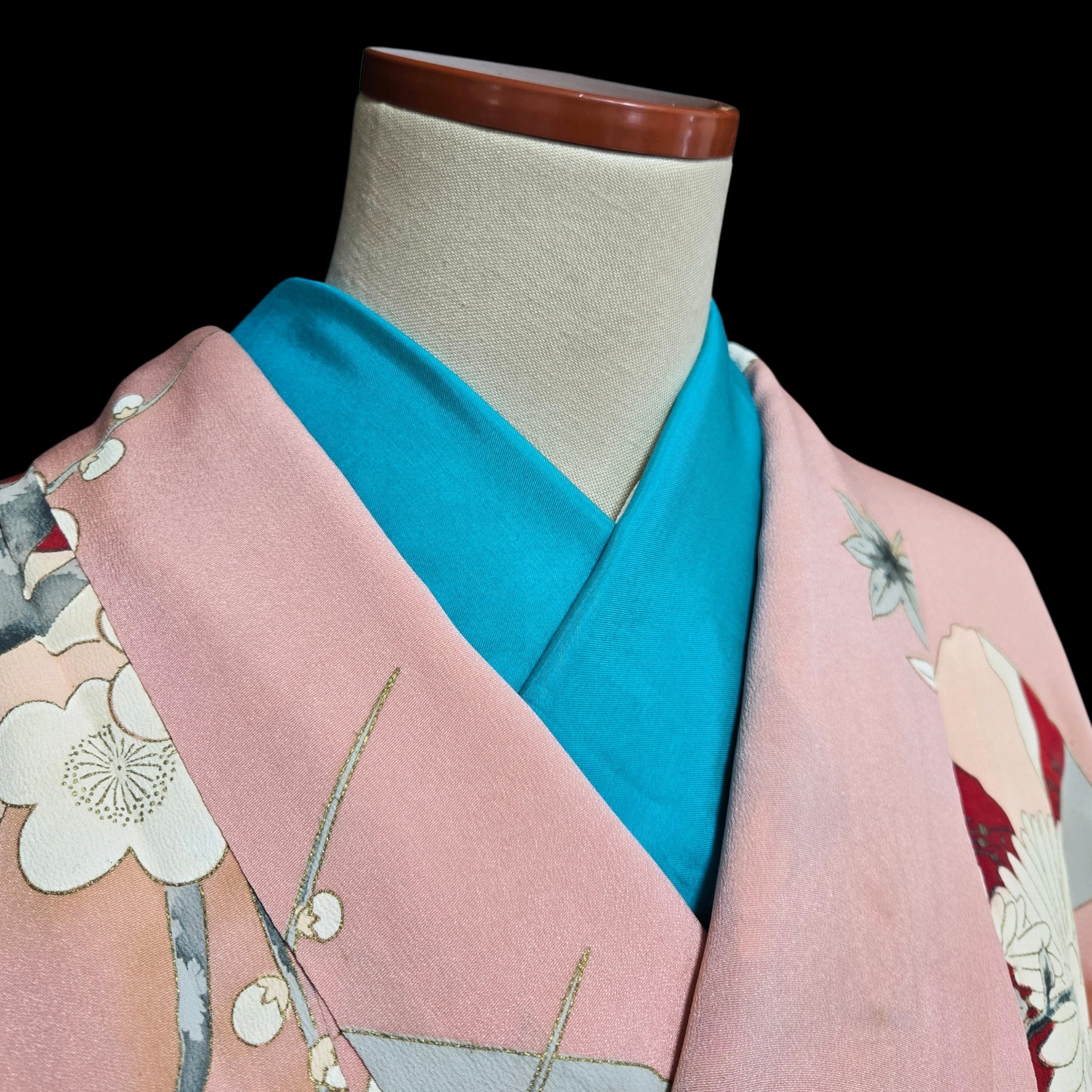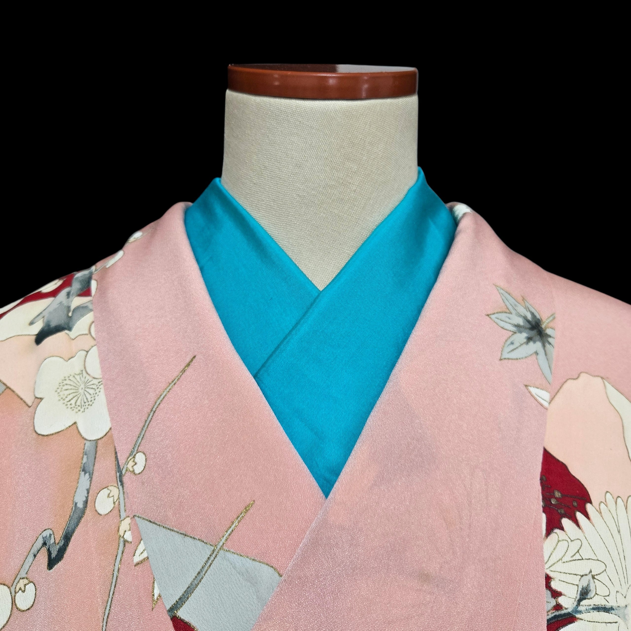ターコイズブルーの鮮やかな半衿。