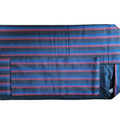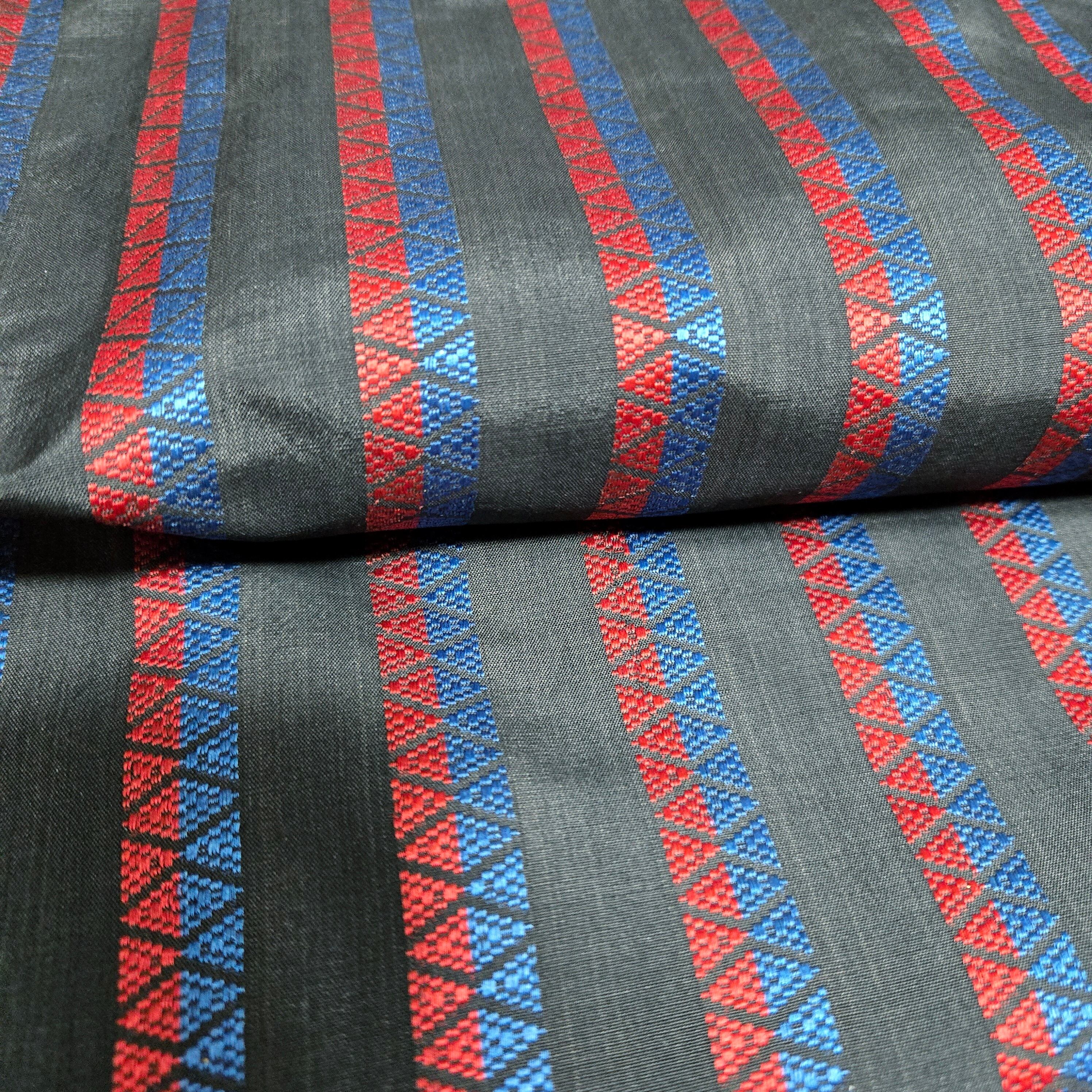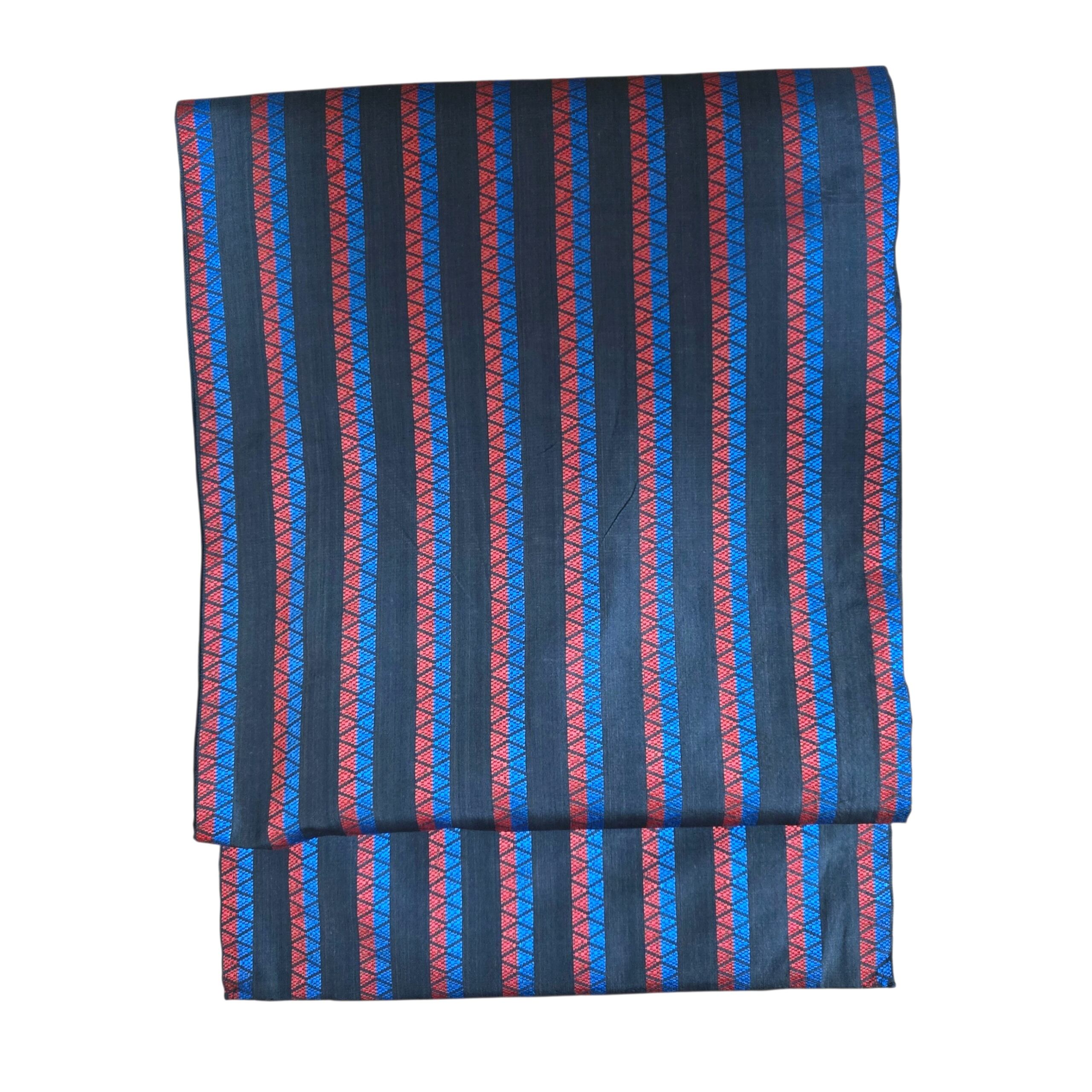 黒地に赤と青のストライプ柄のアンティーク名古屋帯です。