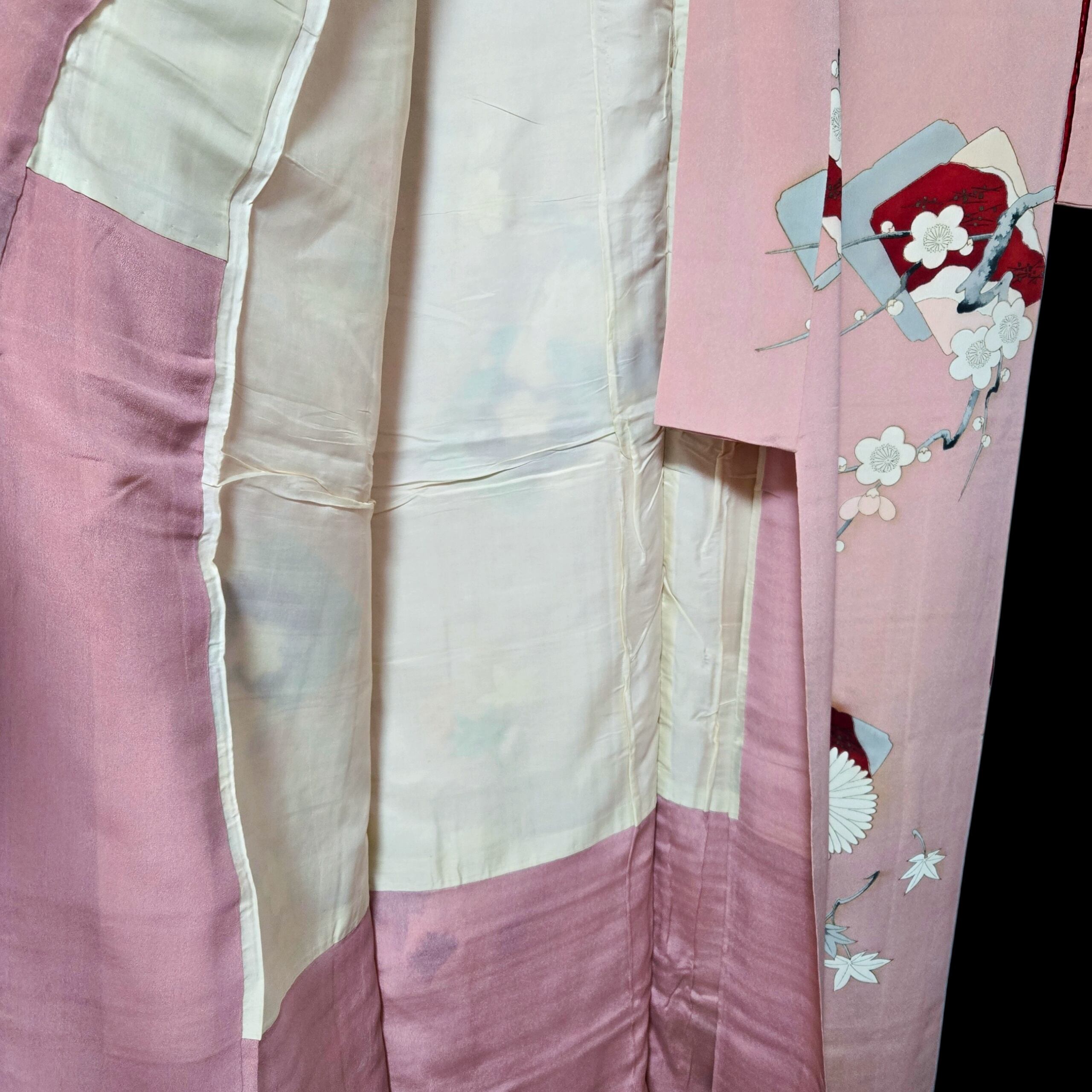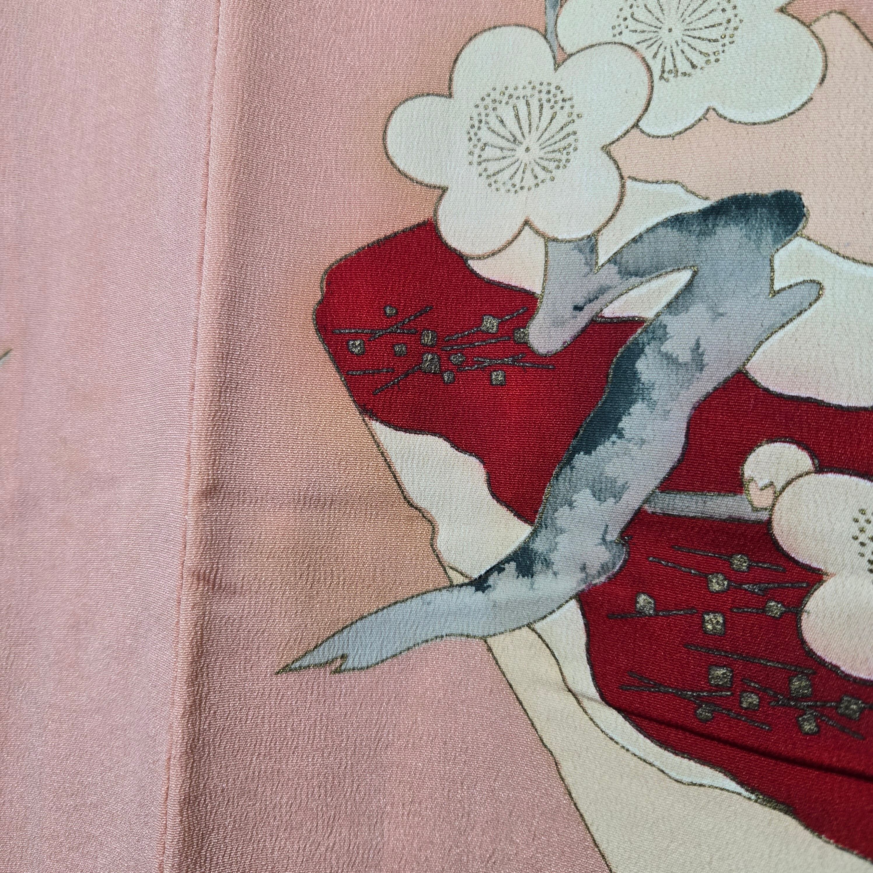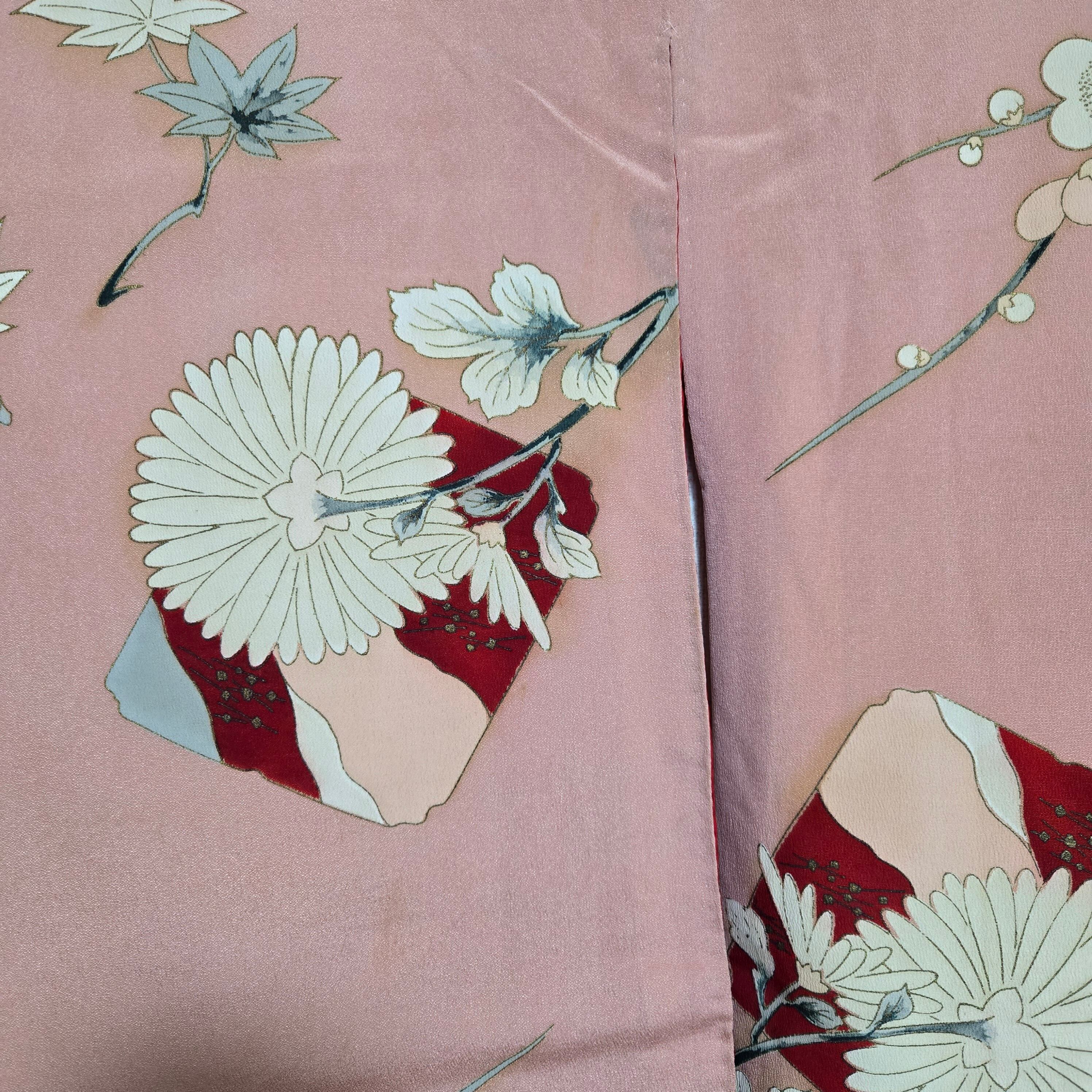 ピンク 菊 アンティーク着物 小紋 鹿 アンティーク名古屋帯