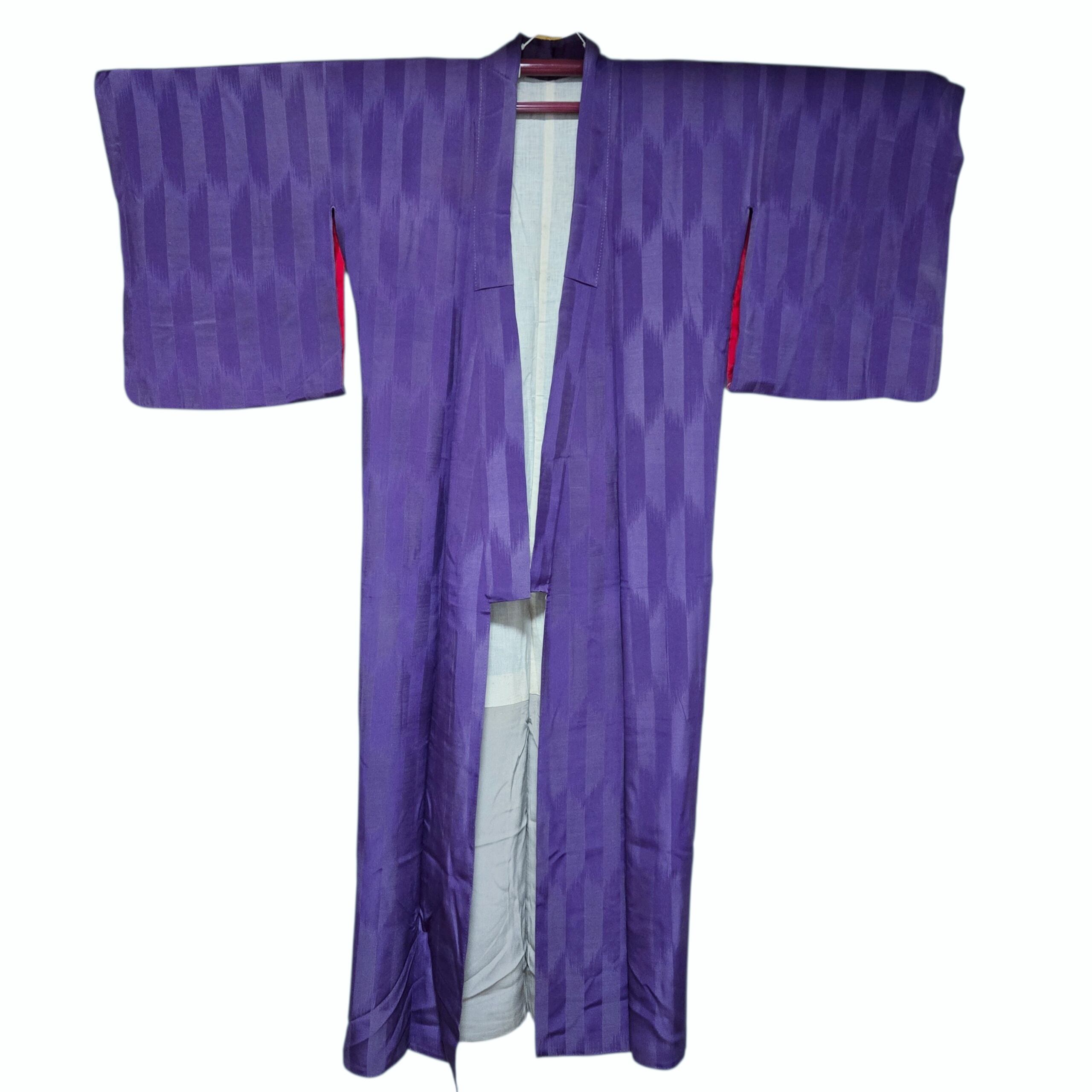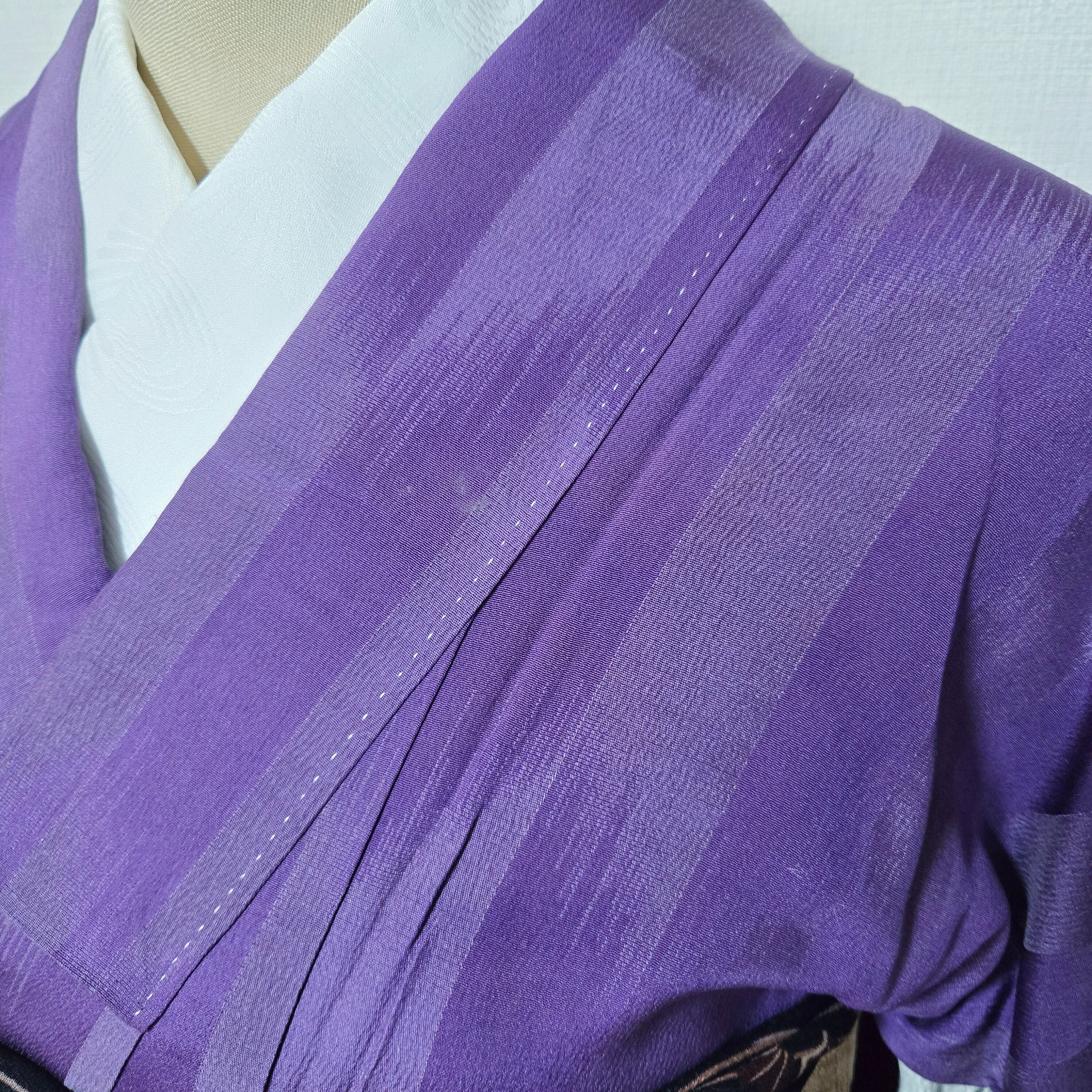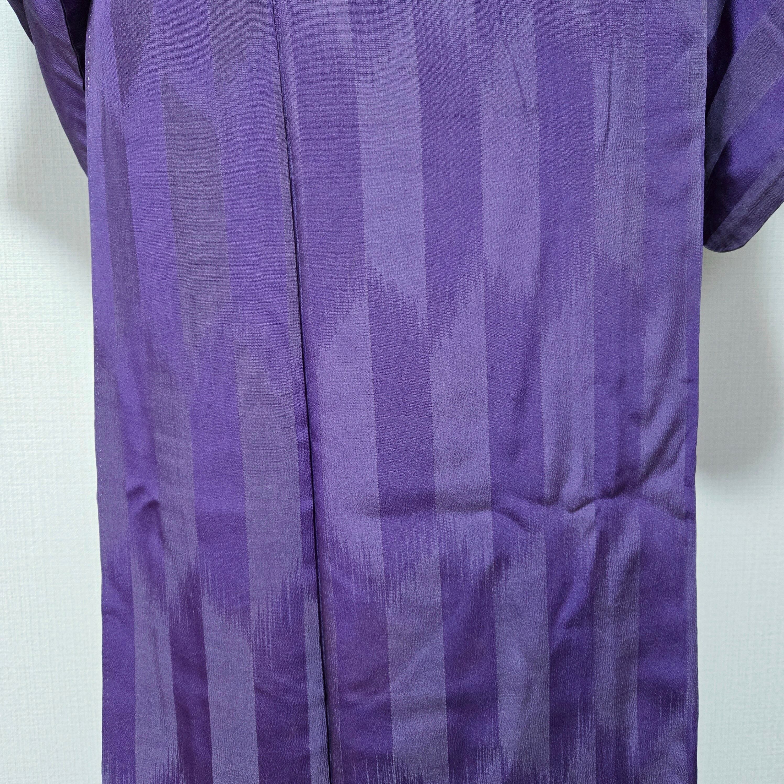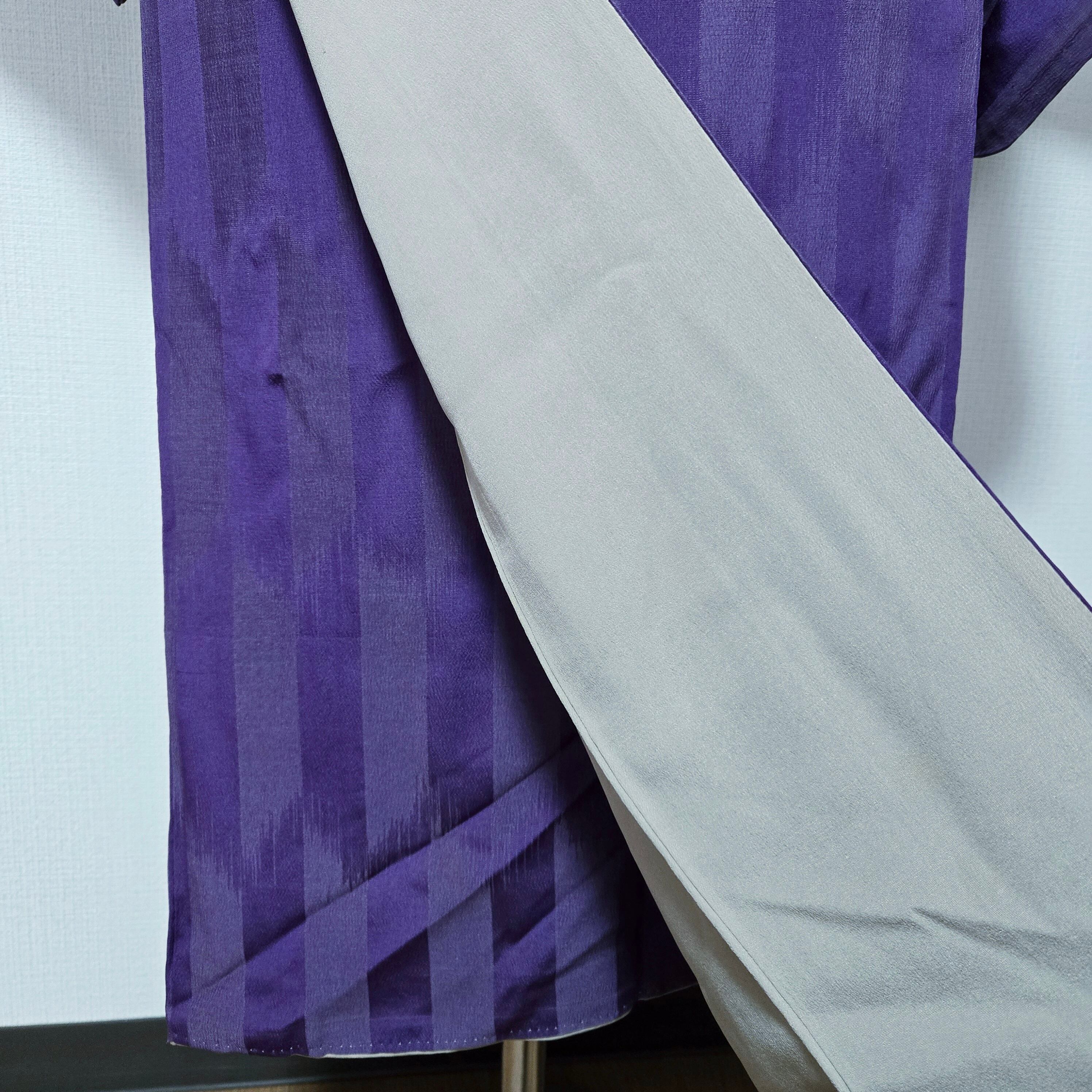 縞 無地 紫 アンティーク着物 名古屋帯