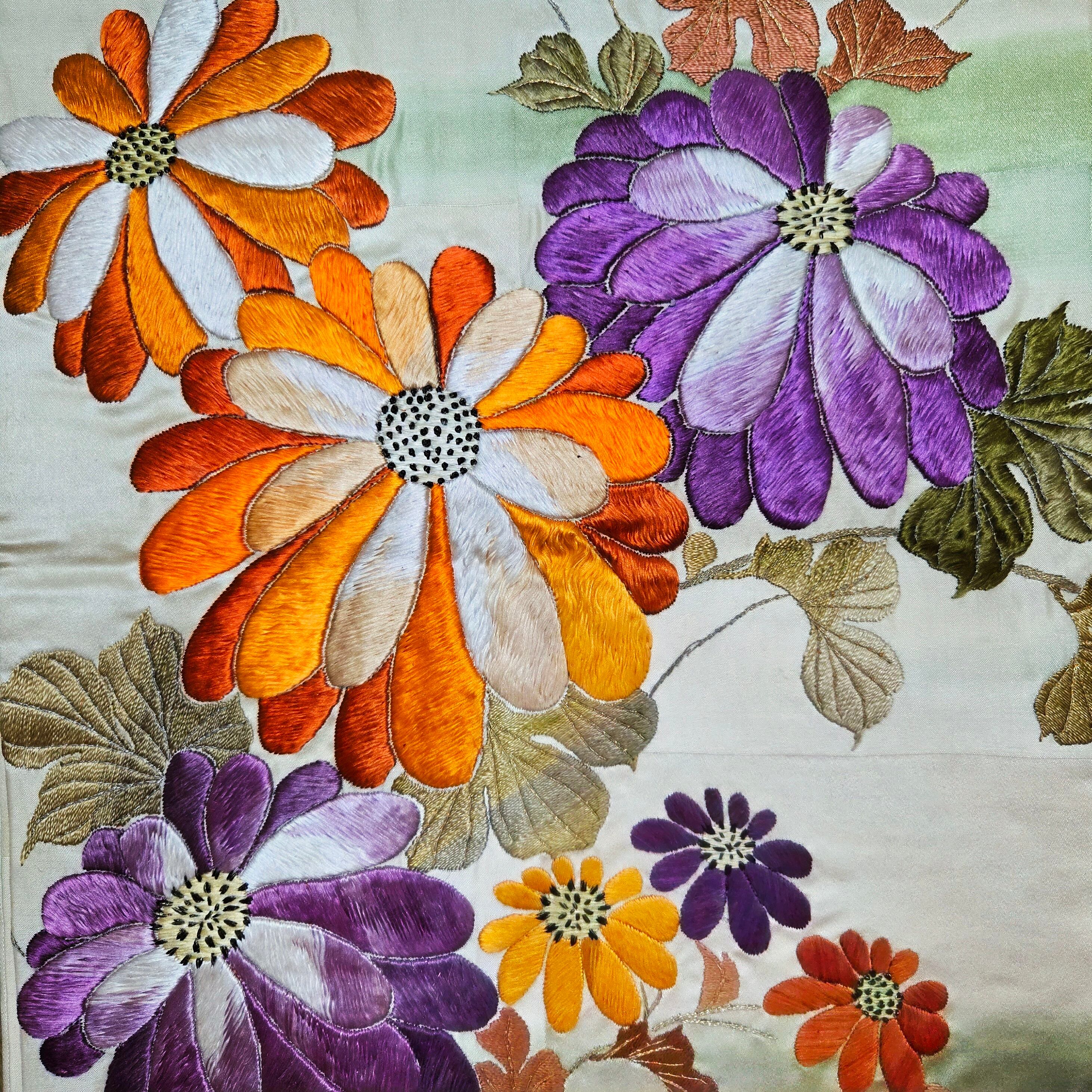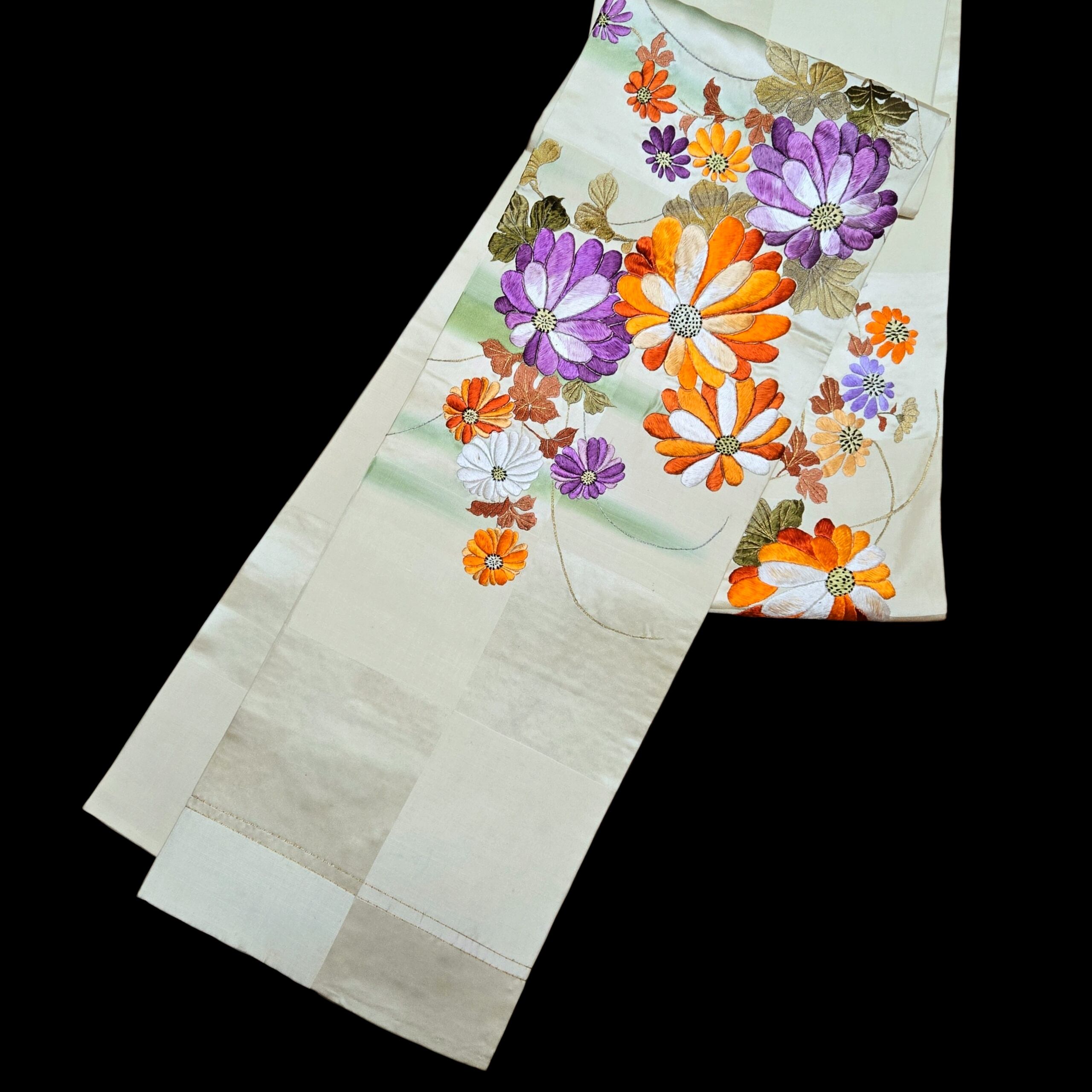 菊 アンティーク引き抜き帯 刺繍