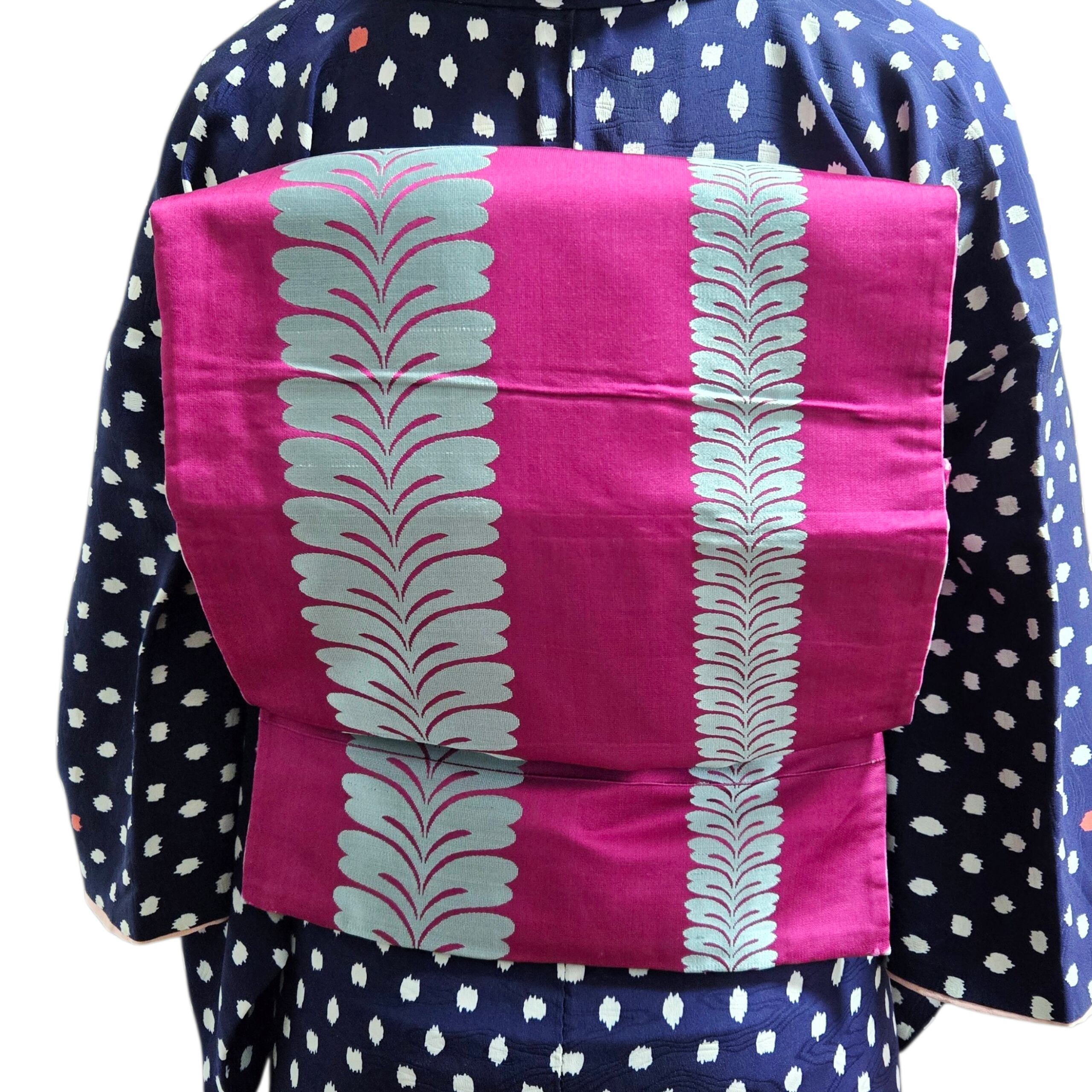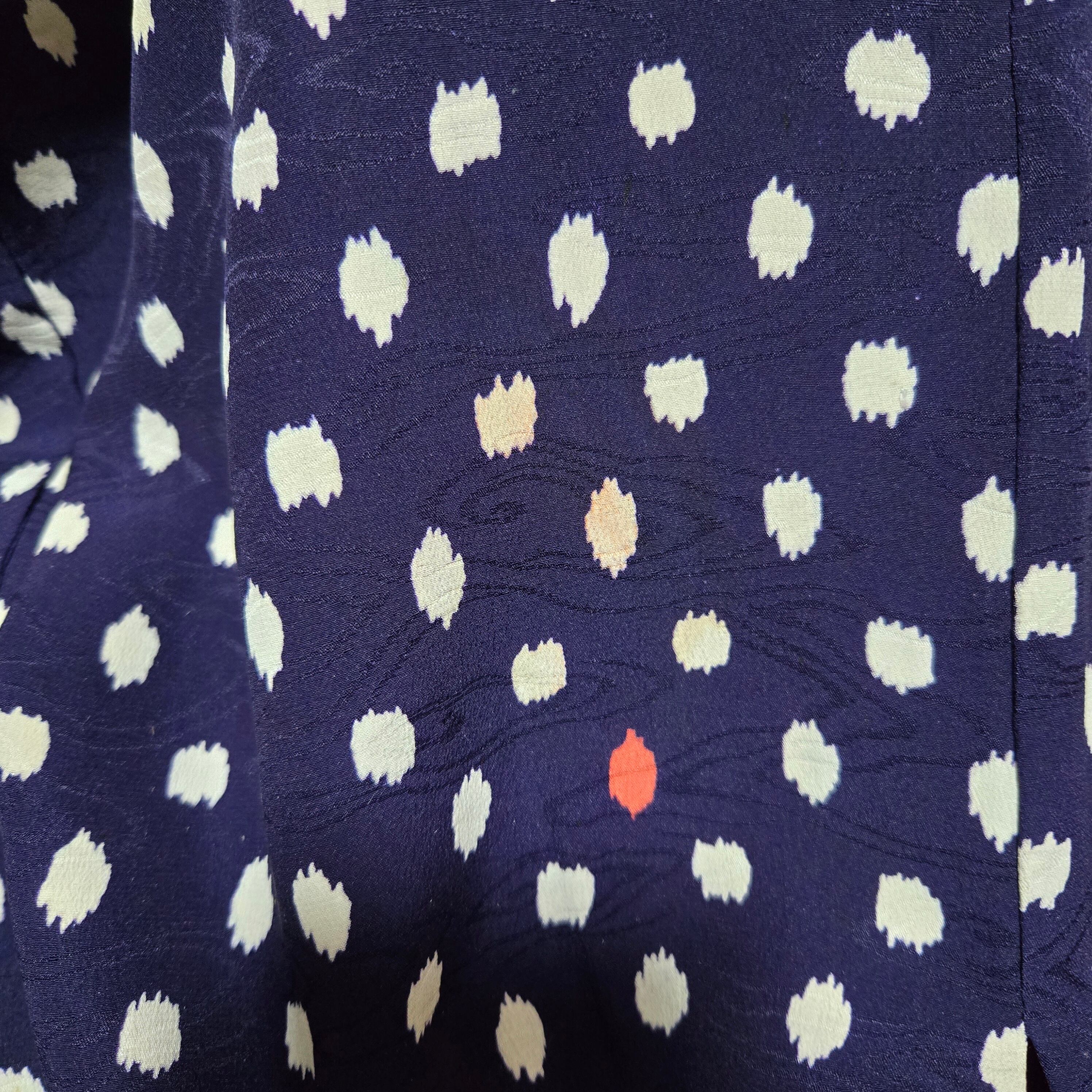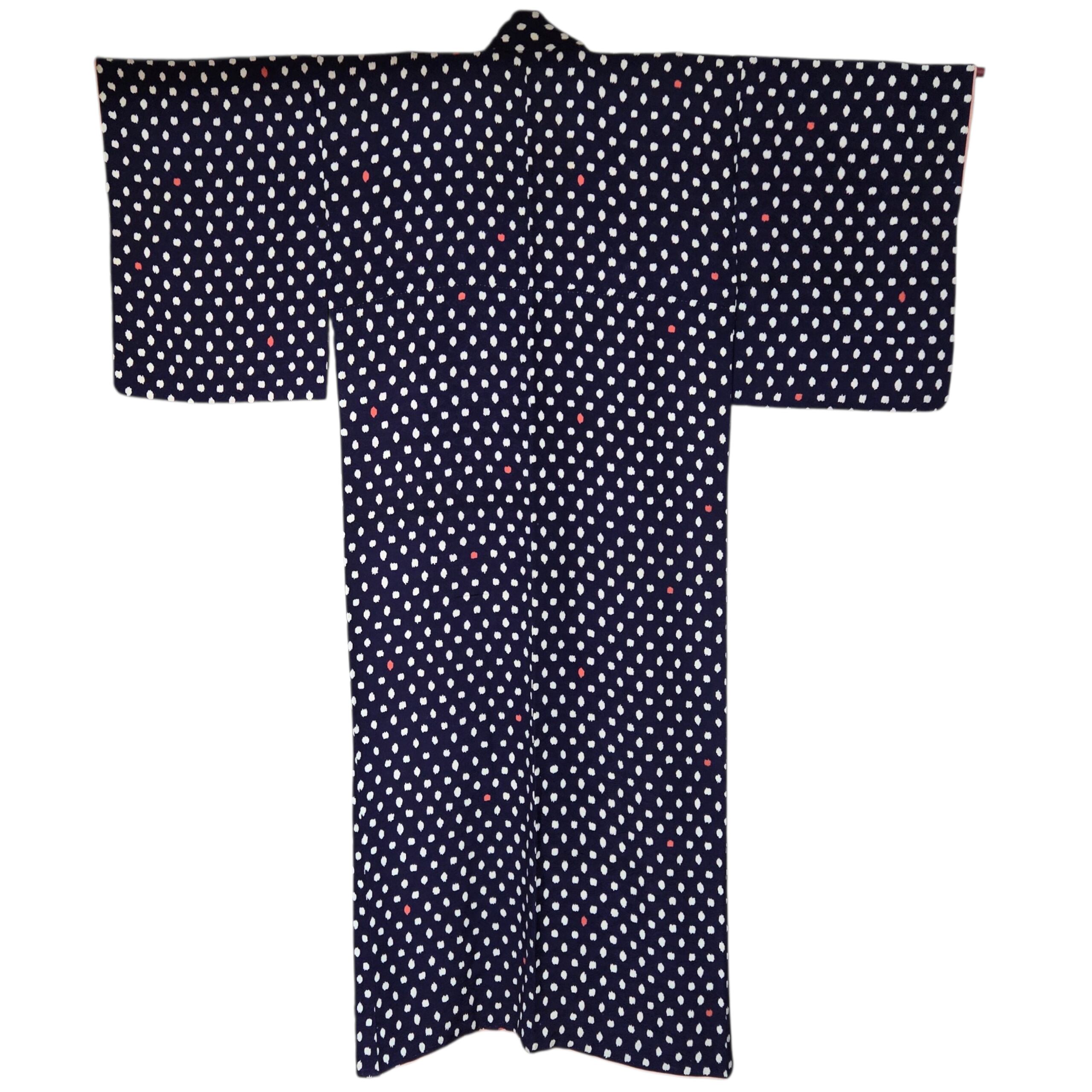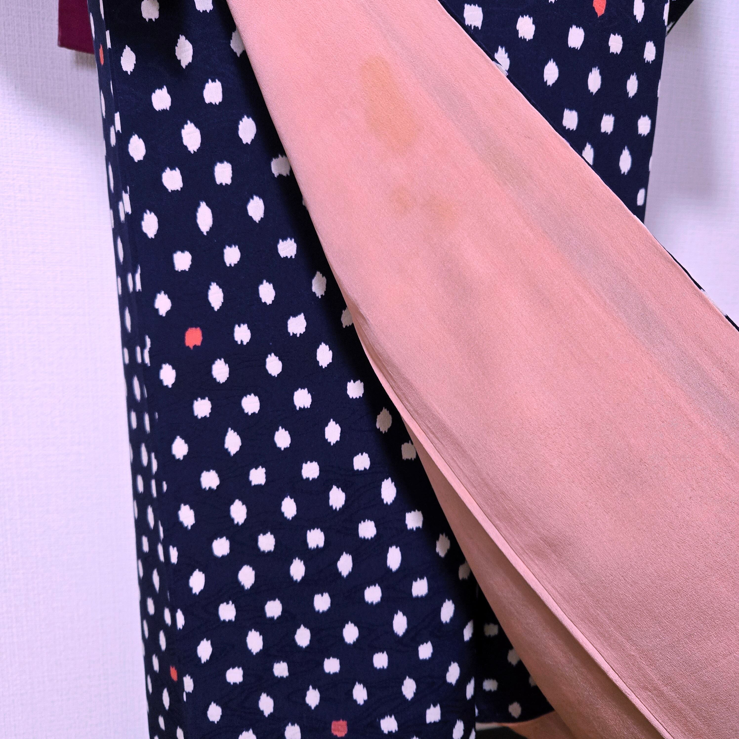 水玉 ドット 紺 アンティーク着物 独鈷藤 マゼンダ