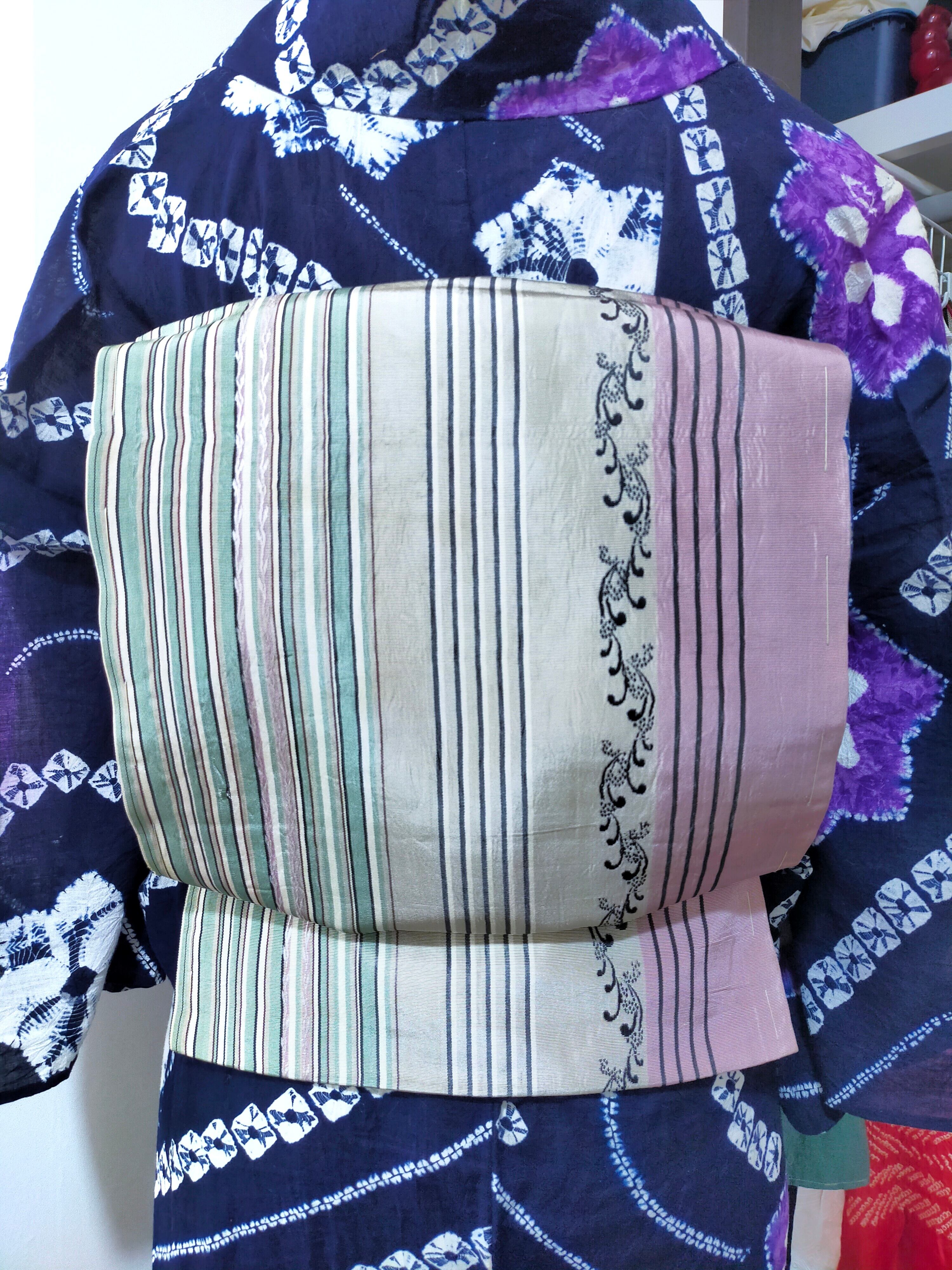 【アンティーク浴衣セット】絞り浴衣+ストライプ帯