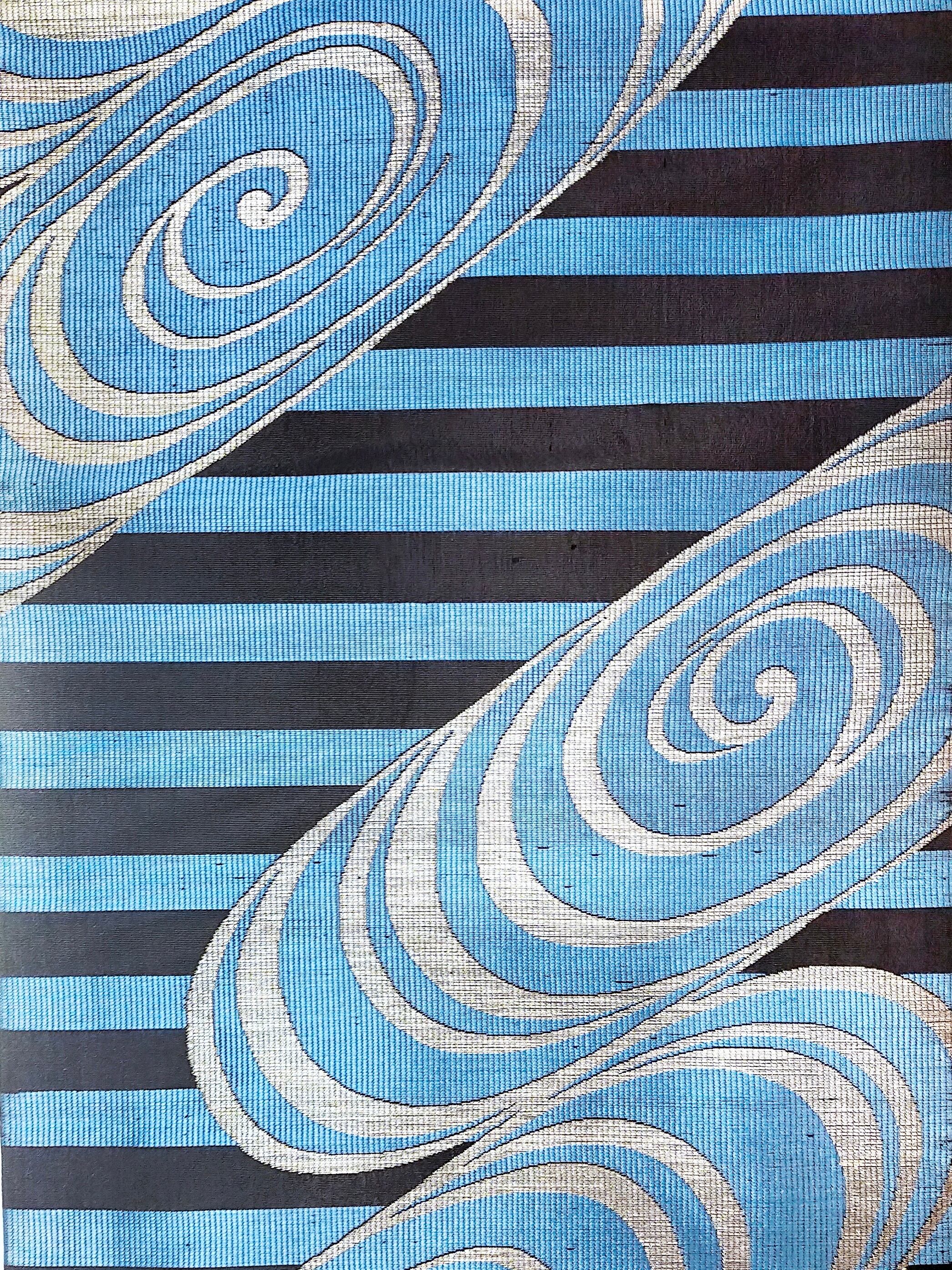 【流水文様と鳥柄の両面アンティーク名古屋帯】