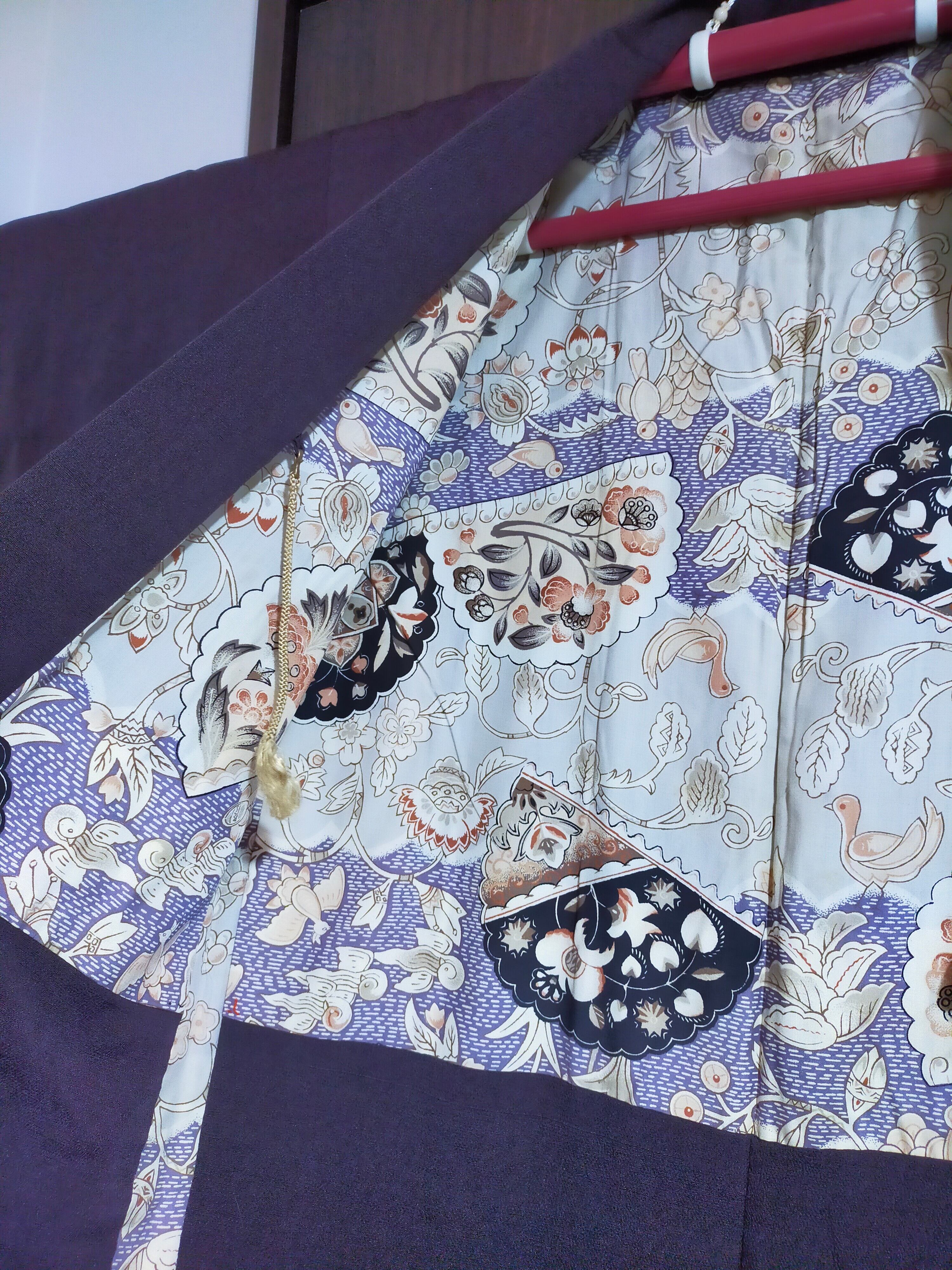 アンティークならではの裏地や質感がとても綺麗です。真っ黒ではなく少し、紫がかった色です。