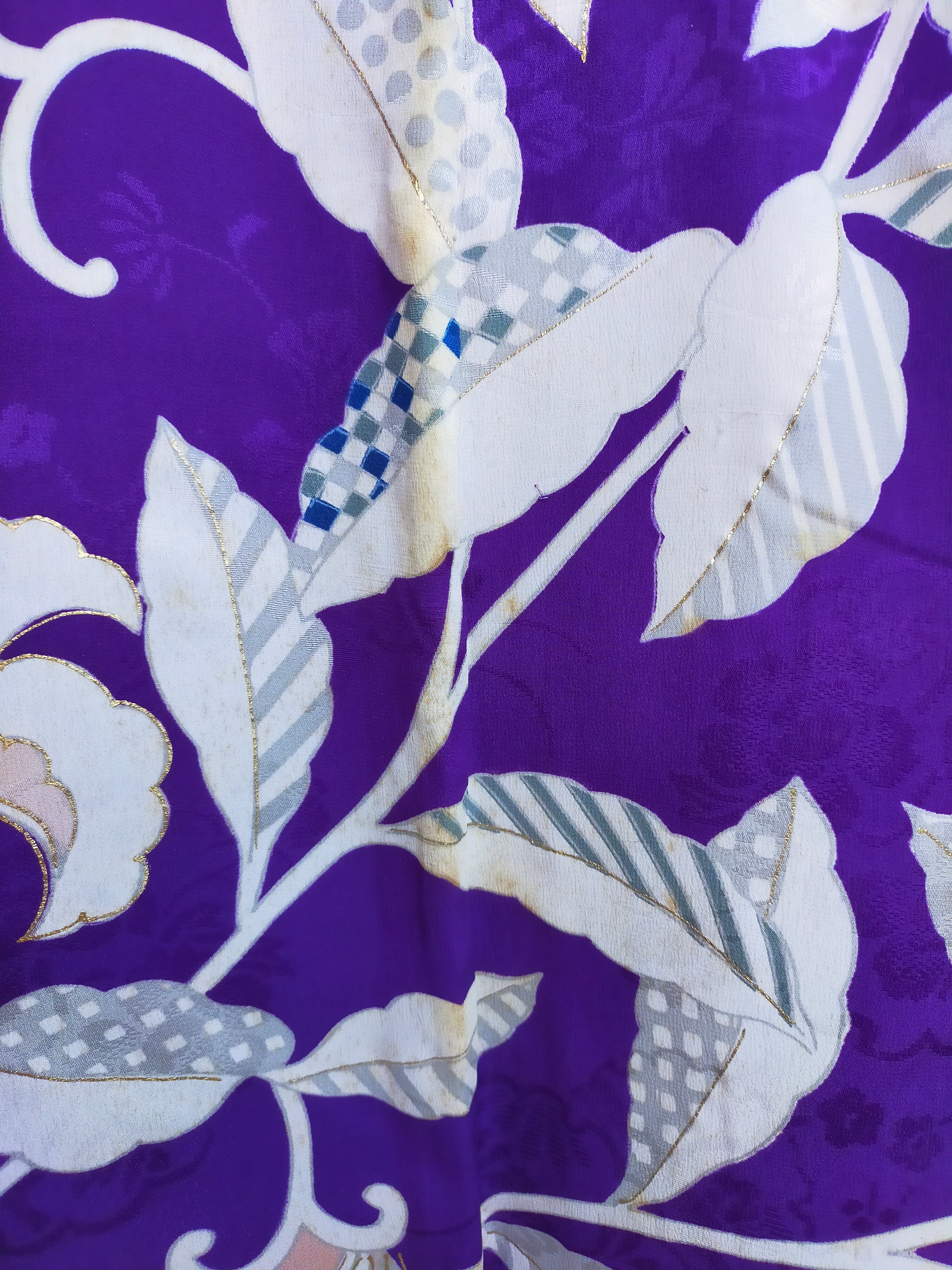 アンティーク着物なので生地が弱くなっており、破れやすいです。