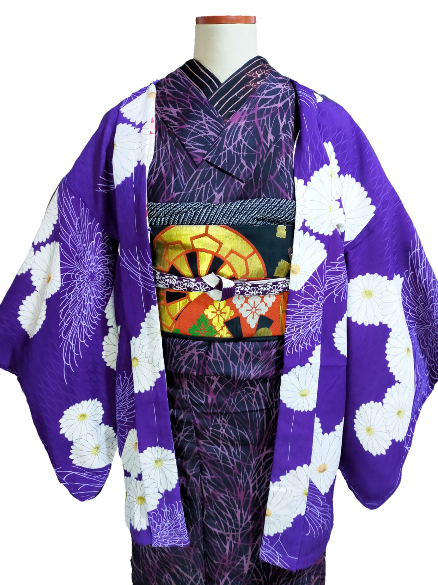 菊柄 紫 アンティーク羽織