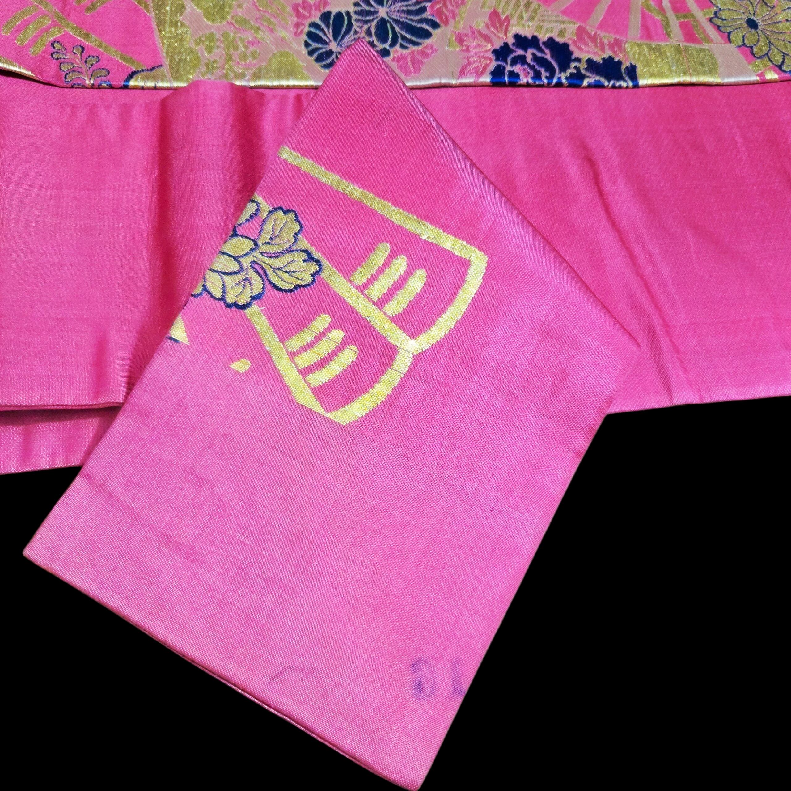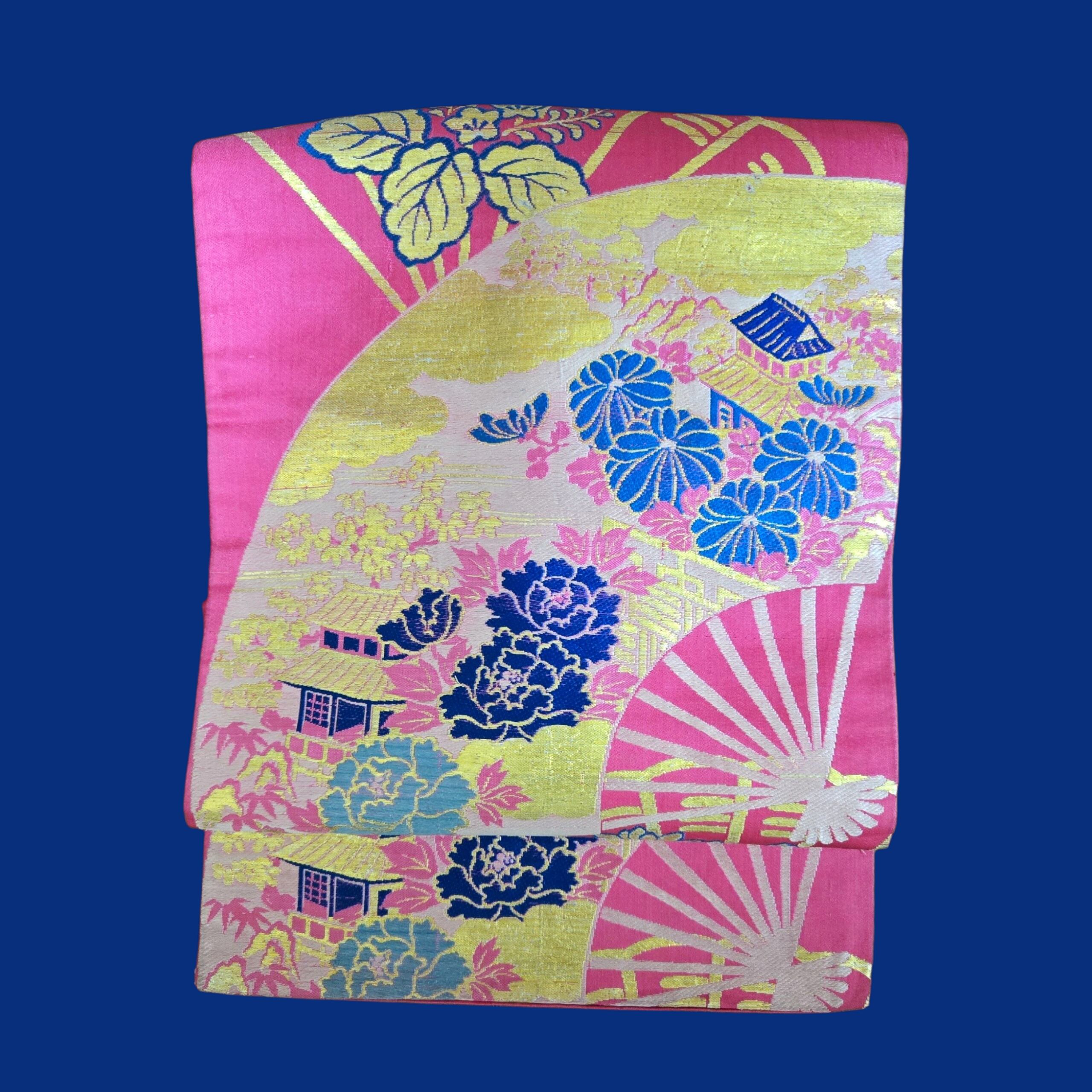 花扇柄の金糸が織り込まれた華やかな名古屋帯をです。