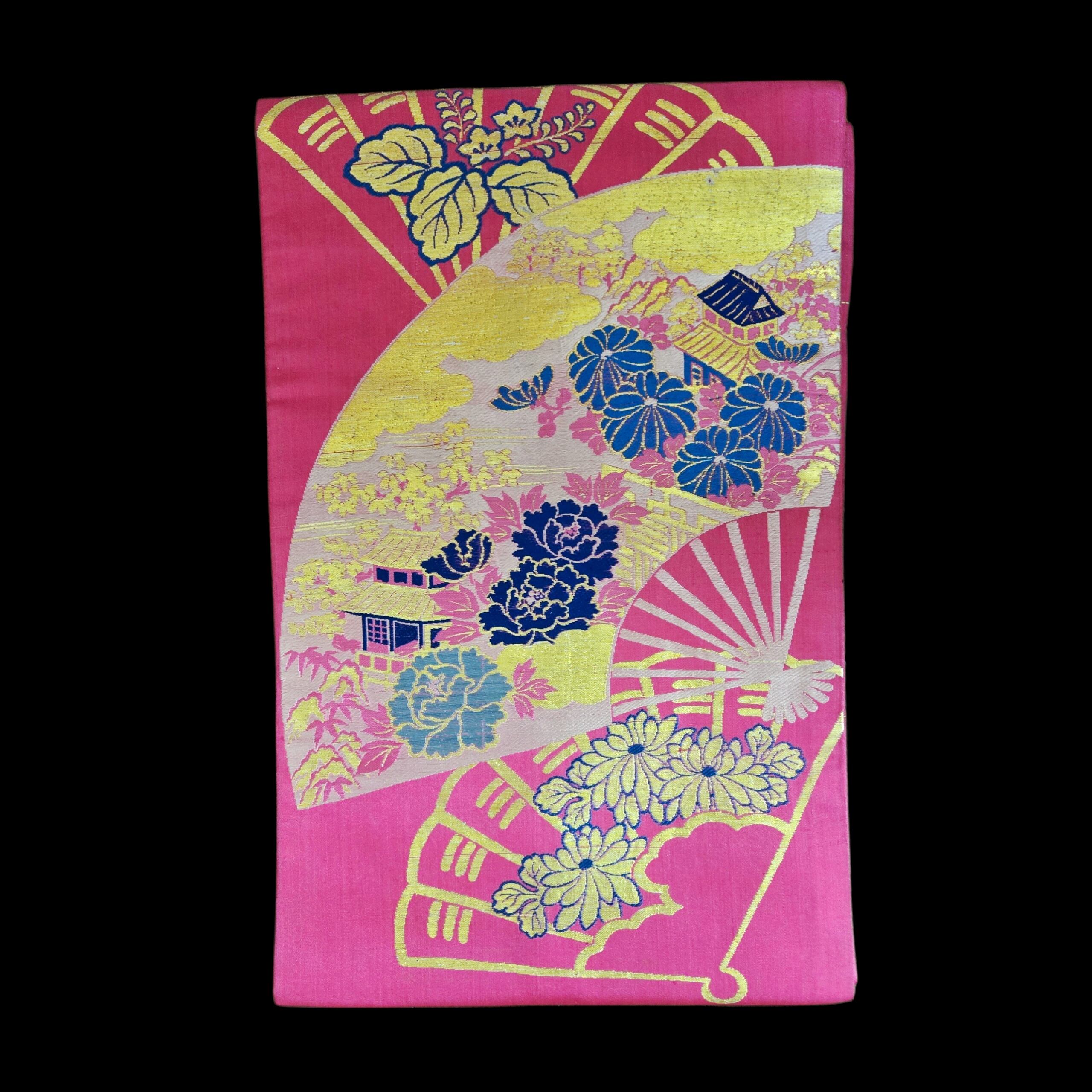 花扇 菊 牡丹 アンティーク名古屋帯