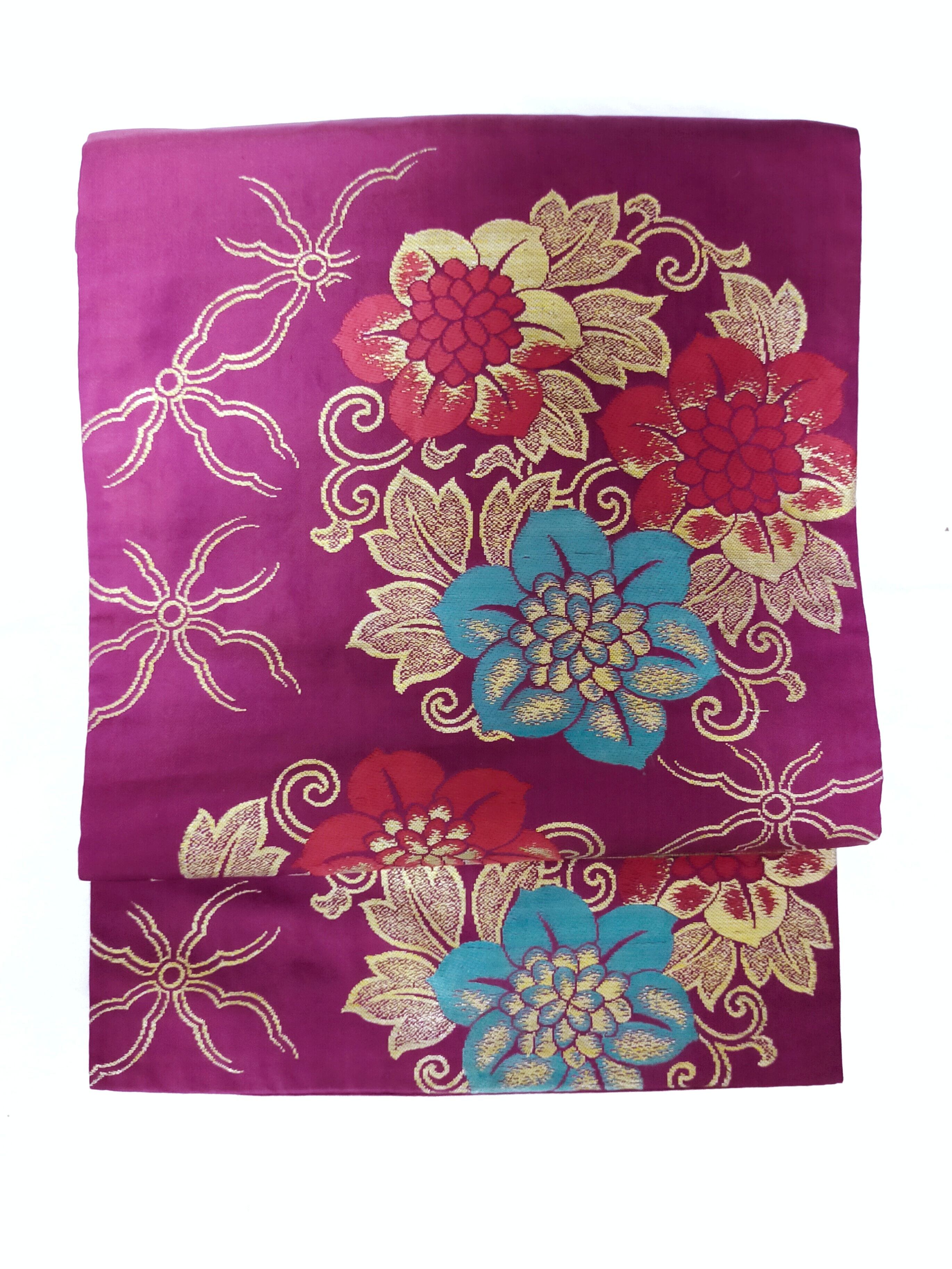 クレマチス 鉄線 赤紫 アンティーク名古屋帯