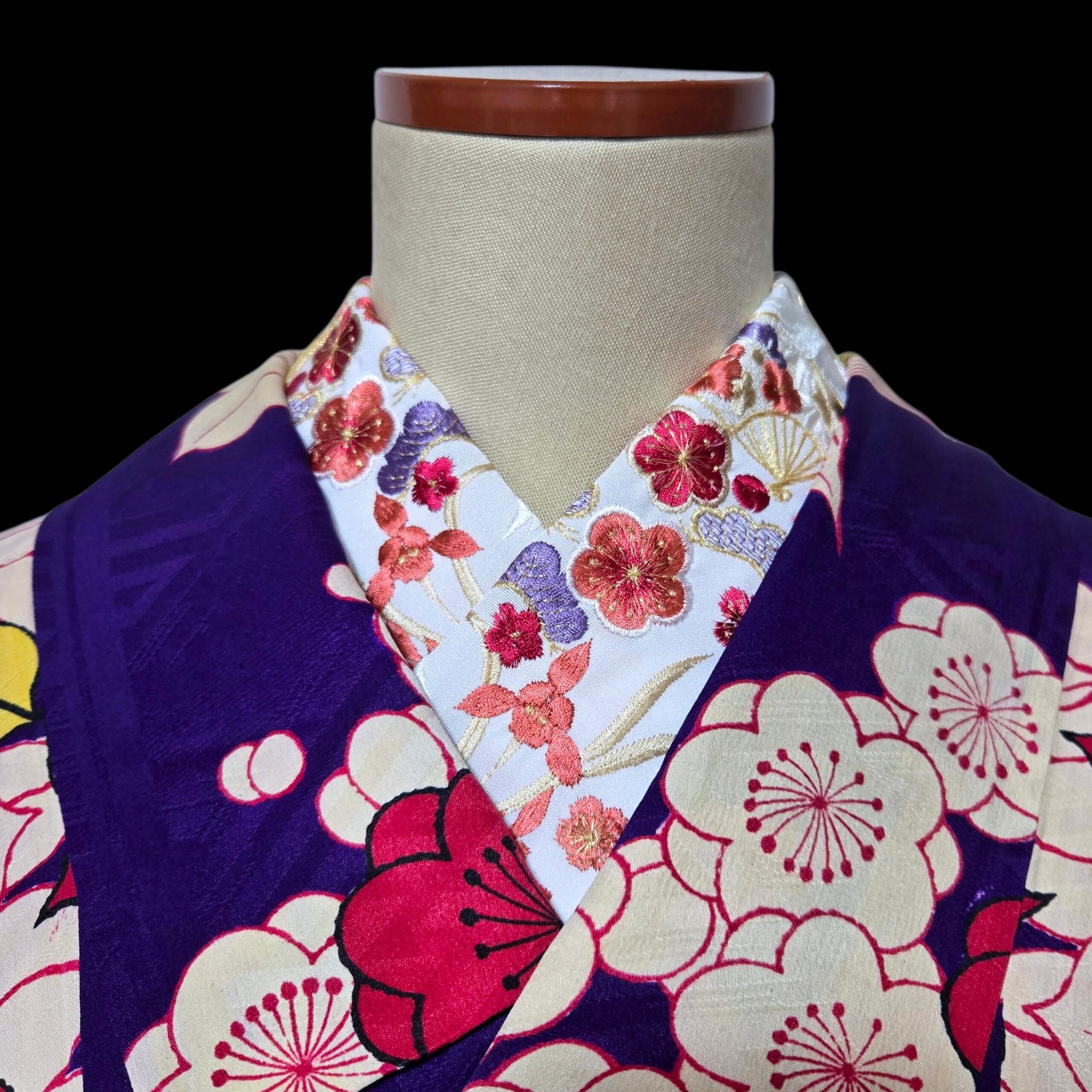 白地に梅や松、鶴など縁起の良い柄のとても豪華な刺繍半衿。